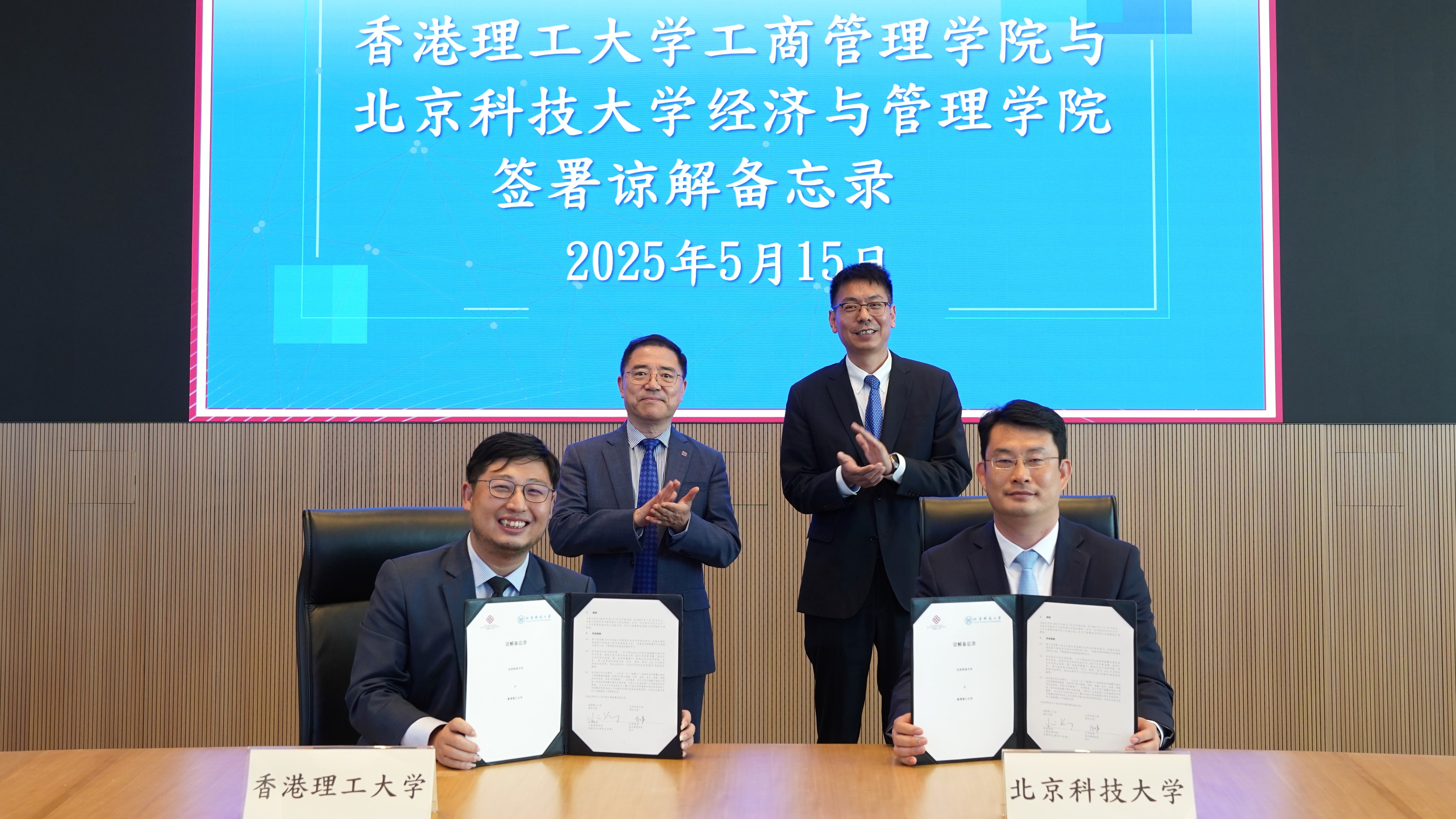 谷炜代表学院与香港理工大学工商管理学院签署谅解备忘录。学院与香港理工大学工商管理学院自2024年起即建立了合作意向。2024年10月,学院领导率团访问香港理工大学,明确合作方向和内容。2025年2月,香港理工大学工商管理学院郑大昭院长访问探花视频 ,双方进一步落实合作细节。