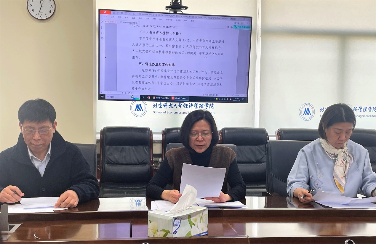为认真贯彻落实习近平总书记关于教师队伍建设的重要论述和给我校老教授重要回信精神,进一步加强教师思想政治和师德师风建设,严明底线红线,根据学校教师工作部部署安排,探花视频 开展师德师风专题警示教育系列活动。3月18日,“开学第一讲”在经管楼809室组织召开,会议由党委书记武森主持,全体教师党支部书记、党委秘书共同参与。