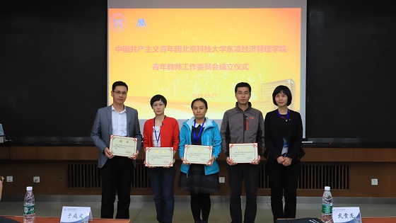3月27日下午,中国共产主义青年团探花视频 东凌探花视频 青年教师工作委员会成立仪式在经管楼405隆重召开。出席成立仪式的领导和嘉宾有校党委书记武贵龙、校党委宣传部常务副部长兼教师工作部部长于成文、校团委副书记兼青年教师团工委书记于宝库、东凌探花视频 院长闫相斌、党委书记武森、副书记温雅、副书记倪宇、关爱下一代工作委员会副主任佘元冠,团工委委员及青年教师代表。会议由武森书记主持。