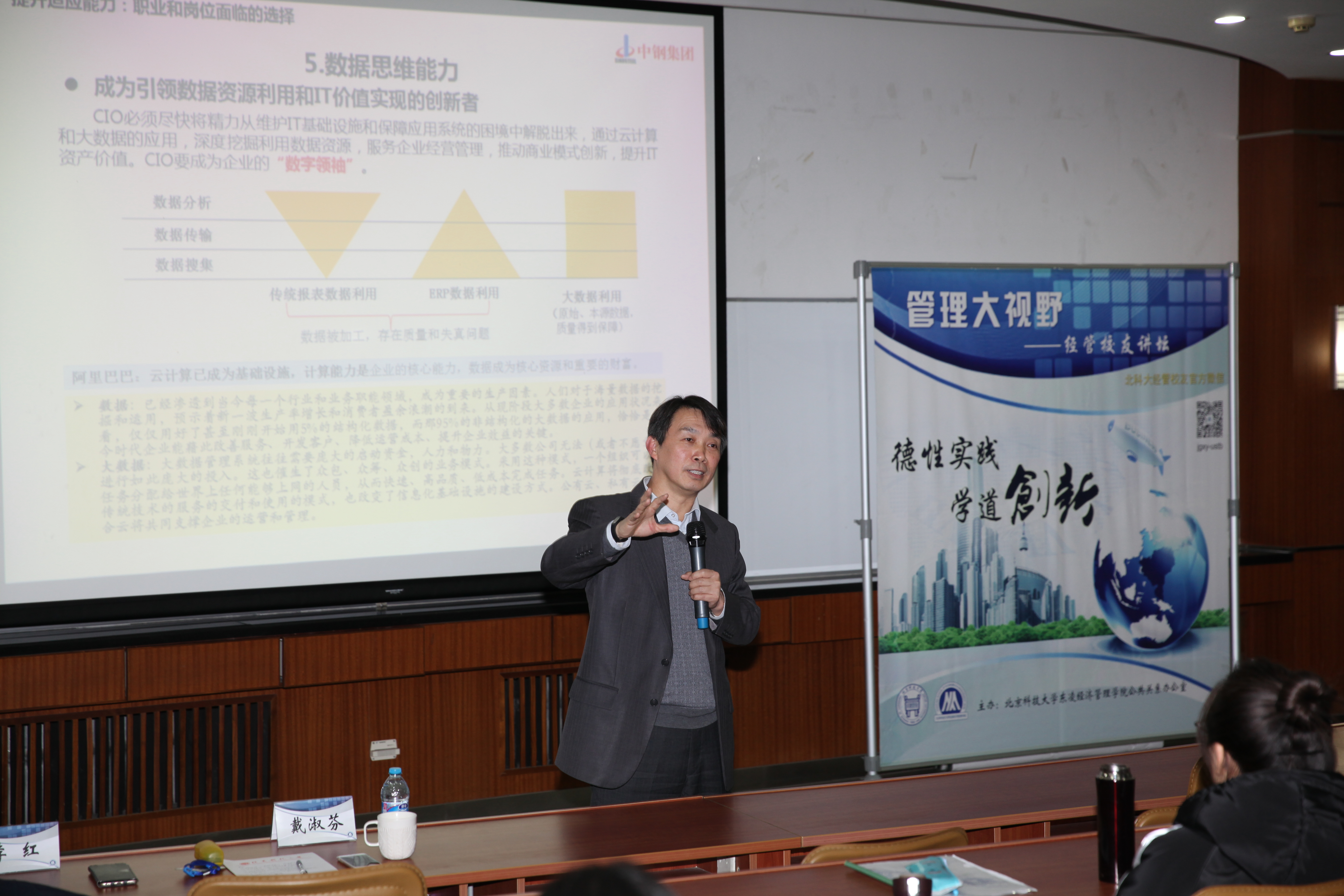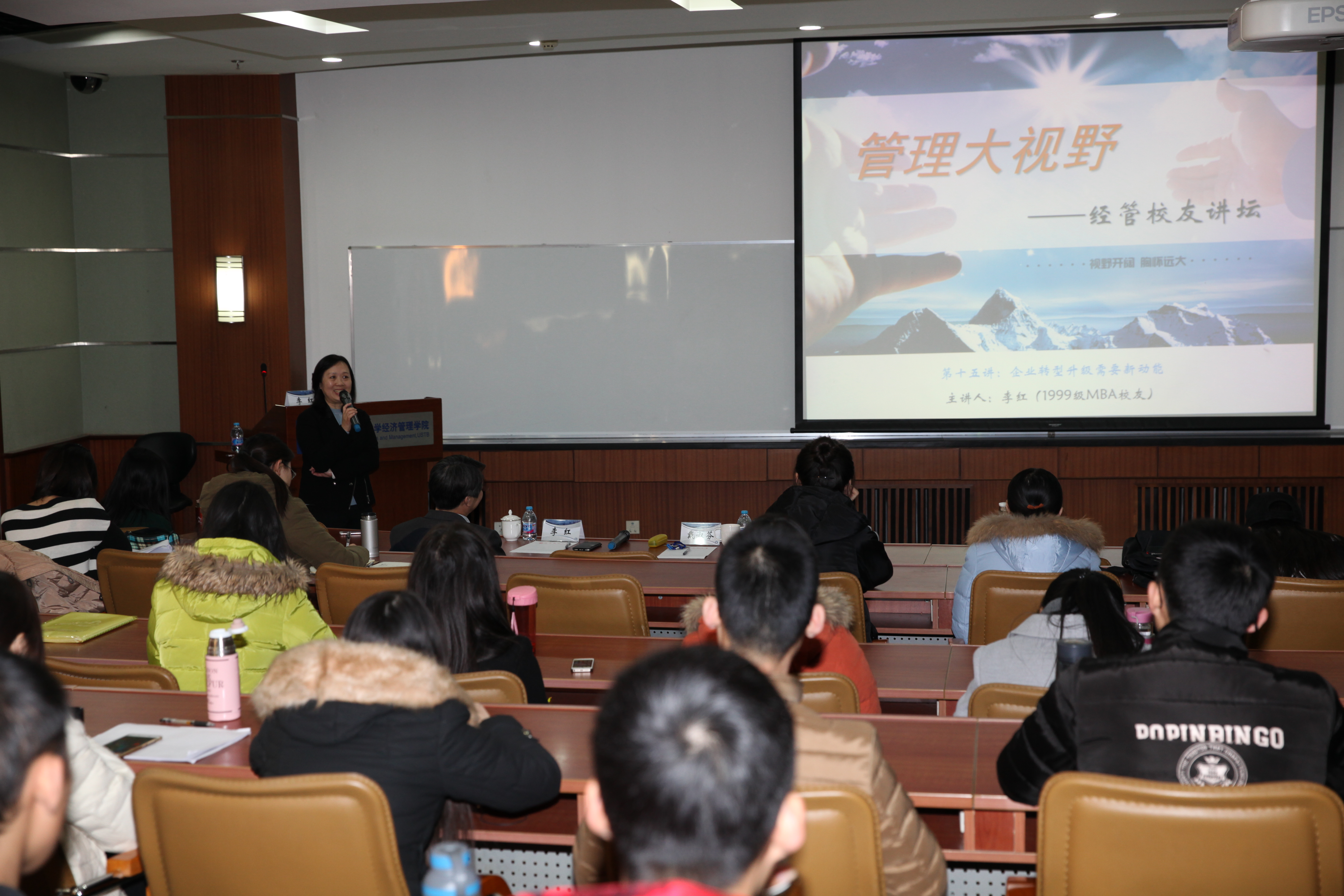 2016年11月23日,“管理大视野—经管校友讲坛”第十五讲在经管楼312教室举办。本期讲座主题为“传统企业转型升级需要利用新动能”,主讲嘉宾为探花视频 MBA1999级校友李红。李红校友目前就职于中国中钢集团公司,任信息管理中心总经理。