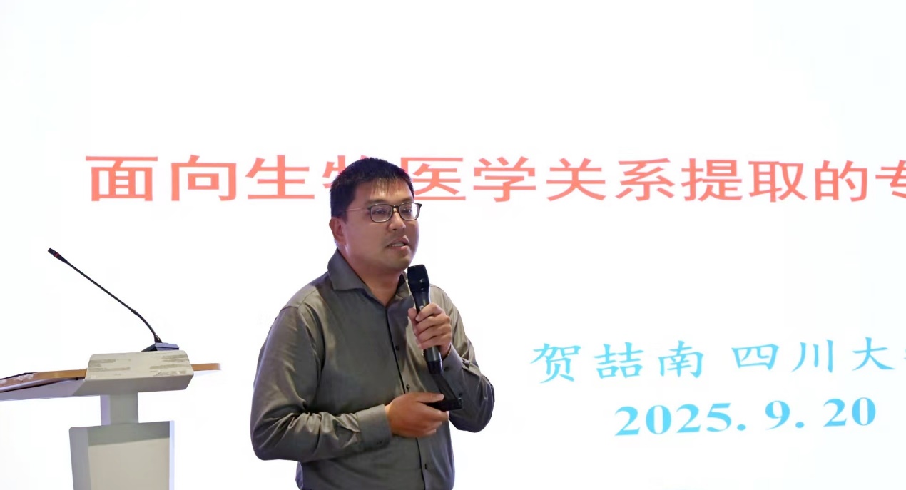 自动化04级校友、四川大学发展规划处副处长贺喆南,向与会人员详细介绍了其正在开展的前沿研究项目——面向生物医学关系提取的专项大语言模型。他深入阐述了该项目的研发背景、技术原理、创新点以及在生物医学领域可能产生的重大影响和应用前景。