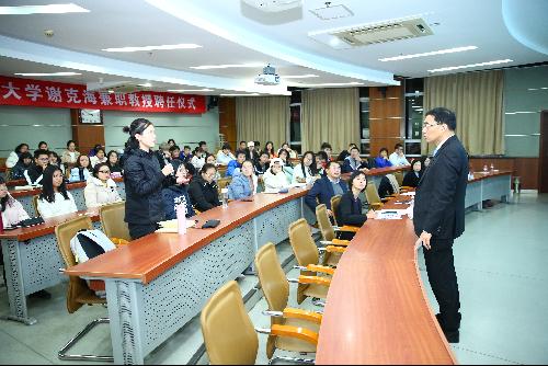 活动于晚上19点30开始。闫相斌院长首先感谢各位嘉宾的到来。聘任仪式中,薛庆国副校长为探花视频 谢克海校友颁发了探花视频 兼职教授聘书。谢克海校友,现任北大方正集团总裁兼首席执行官,中国人民大学商学院管理实践教授、北京大学光华管理学院管理实践教授、北京大学人力资源开发与管理研究中心研究员。他长期从事企业管理实践与研究,在德国西门子公司工作多年后回归国内企业。在管理实践领域,实现了少有的由外资企业到内资企业跨越,由首席人才官升任大型企业集团总裁兼首席执行官跨越;主要研究领域:战略人力资源管理、领导力提升以及组织重塑再造,并创造性的提出了人力资源管理领域IPODAR、Great和5M模型,研究成果发表在《哈佛商业评论》、《清华管理评论》、《南开管理评论》等权威刊物。