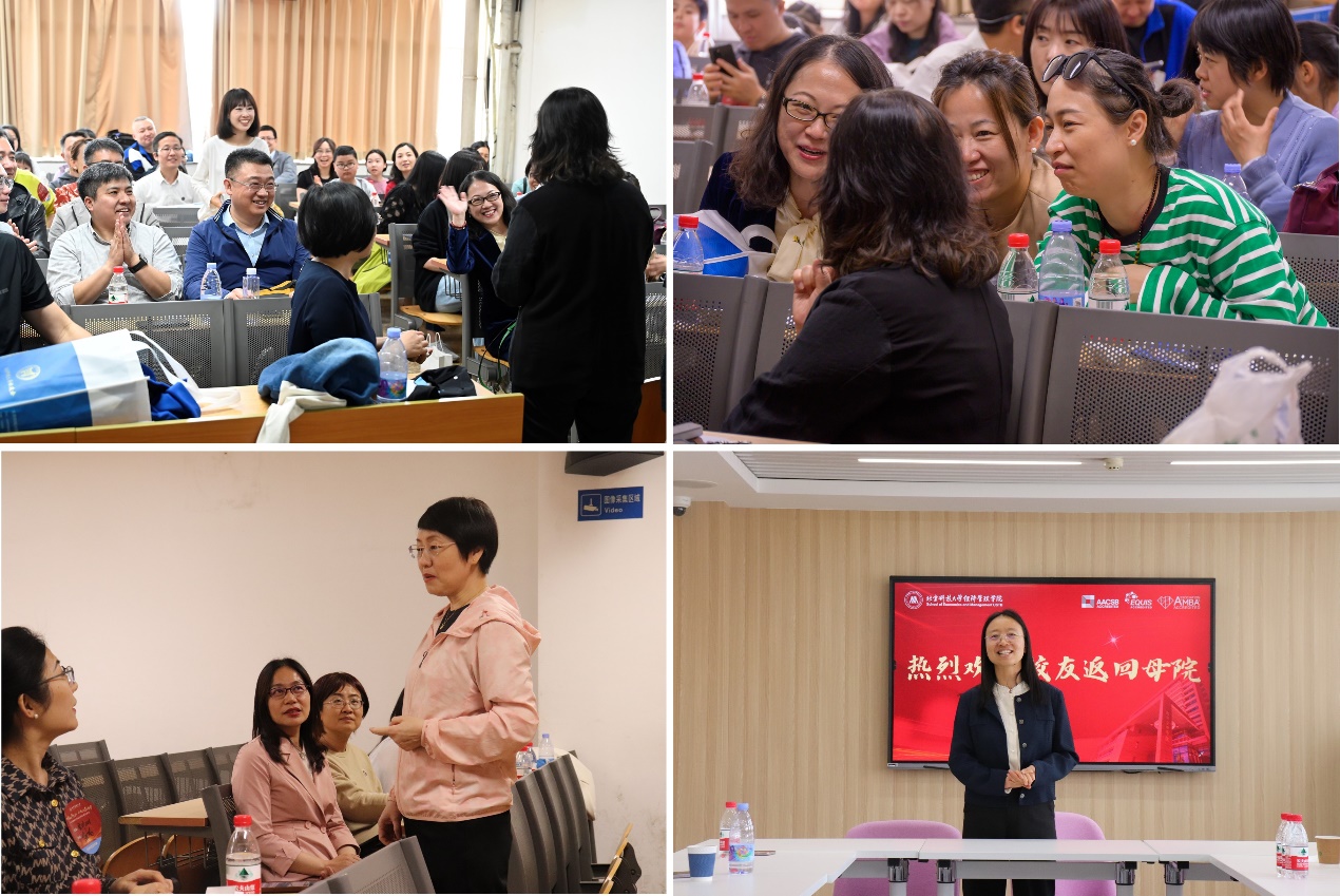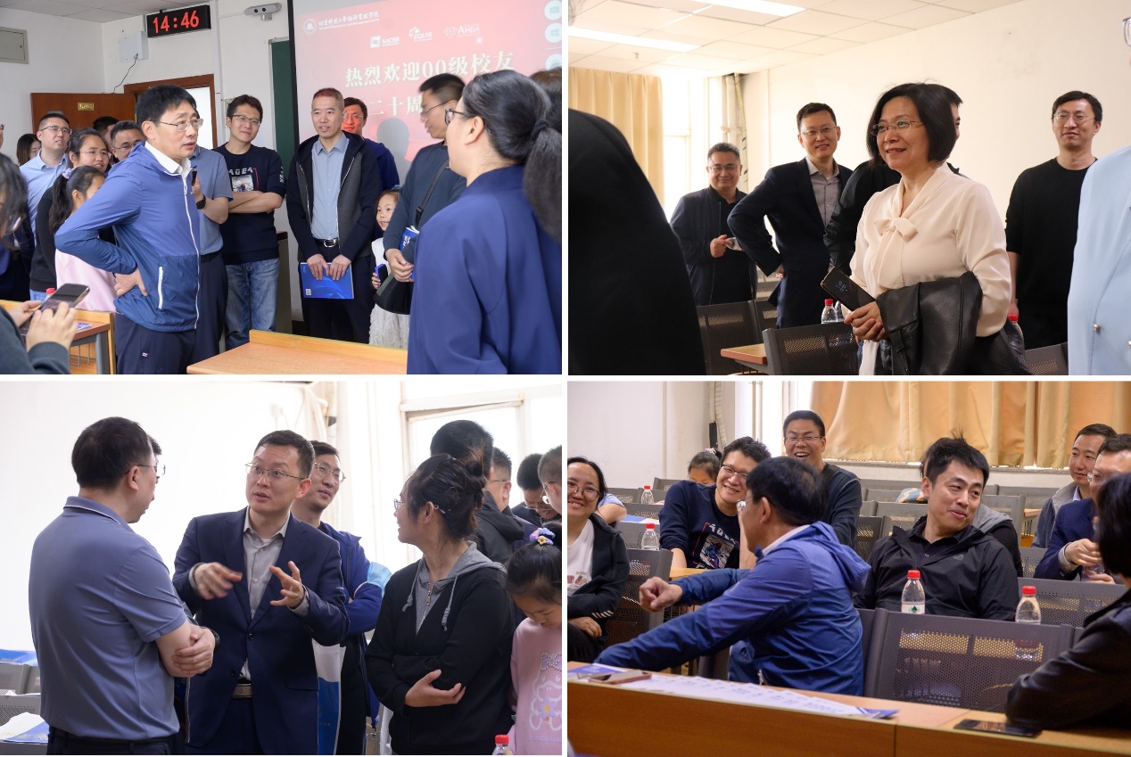下午,学院精心布置,迎接校友们重返母院,开放多个实验室、教室、案例室供校友们参观交流,共同纪念毕业二十周年。天涯海角有尽处,只有师恩无穷期。贾建华、王宾容、高学东、戴淑芬、武森、黄晓霞、苏玲、李晓静、严冬梅老师亲临现场,与校友们一起追忆青葱岁月,再叙师生情、同学谊。交流中,校友们介绍了自己毕业20年来的经历,回忆了在母校求学的快乐时光,分享了自己重要的人生选择和生活感悟,表达了对母校和老师的感恩之情。校友们表示重回母院,切身感受到了学院巨大的变化,倍感自豪。交流结束后师生合影留念。