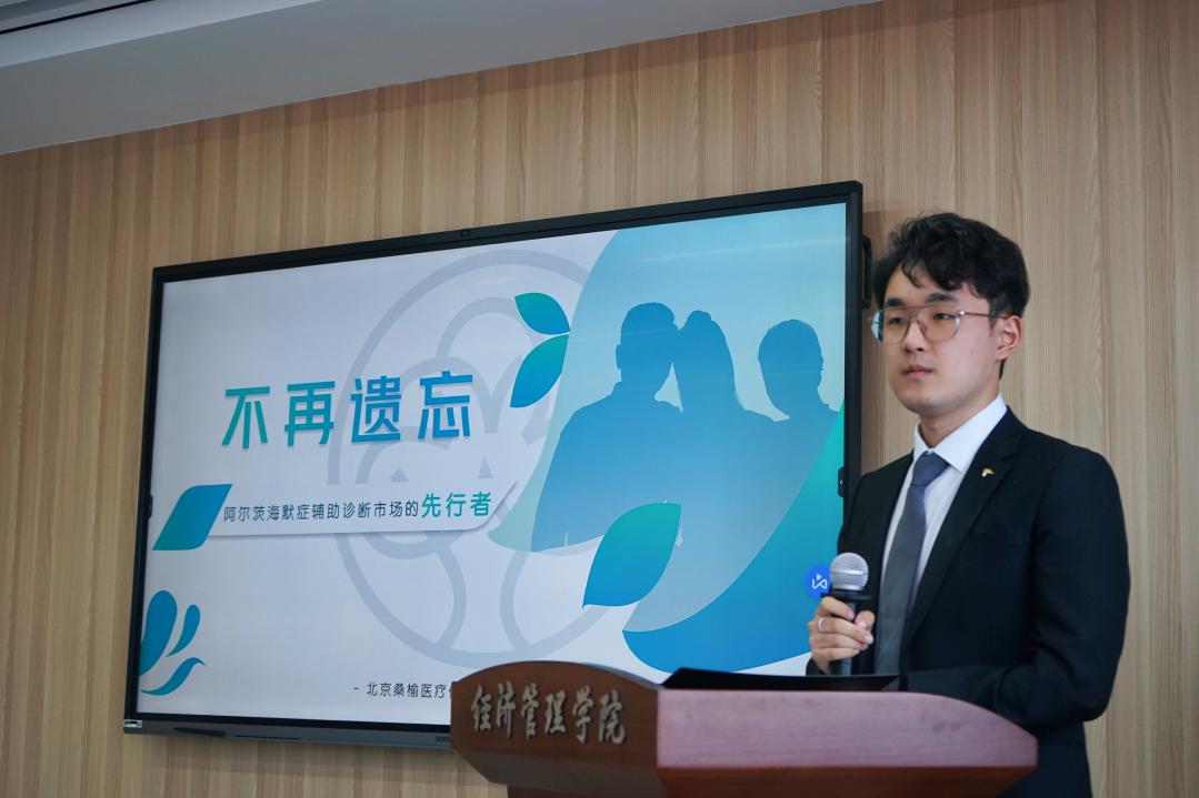 第四个是桑榆未晚–阿尔兹海默症辅助诊断市场的先行者项目团队。他们依托AI算法,致力于阿尔茨海默症的初筛与辅助治疗,团队基于多频段PCMI-EBN的轻度认知障碍脑电信号分析系统与基于丘脑皮层神经计算模型为核心技术,通过算法处理将用户分为未患病、阿尔兹海默症前期、阿尔兹海默症中期和阿尔兹海默症晚期四类状态,从而实现阿尔兹海默症的初筛以及针对不同阶段实行不同的辅助治疗方案。在展示过后,各位专家对该项目给予了极高的评价,李媛校友表达了对该项目的重视,期待深入的交流与合作。