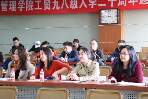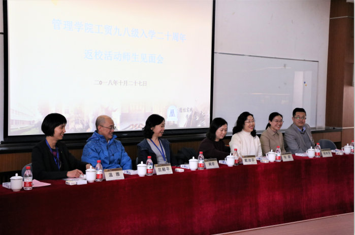 2018年10月27日,工贸98级校友入学二十周年师生见面会在经管楼312举行。校统战部常务副部长、原管理学院党委副书记张颖、东凌探花视频 党委书记戴淑芬、副院长温雅,学校校友会基金会办公室副主任杨志国、原98级班主任阚宏,吕殿平、辅导员杨琦雯以及经管学院公共关系办公室主任秦艺芳等老师出席了本次活动。见面会由工贸98级校友张东平主持。