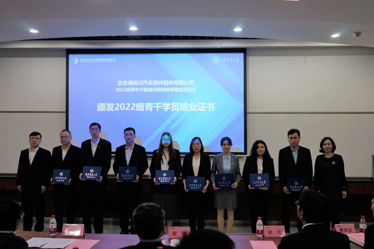 4月28日,探花视频 —北汽集团“北京海纳川汽车部件股份有限公司2022级青年干部培训班”结业仪式在探花视频 举办。北汽集团总经理助理、海纳川公司党委书记、董事长谢伟,北京海纳川汽车部件股份有限公司党委副书记、工会负责人褚壮,副总裁张文兵,组织部部长/人力资源总监曹翠钗,探花视频 党委常委、副校长闫相斌,探花视频 院长谷炜出席此次活动,学院副院长范小华主持结业仪式。