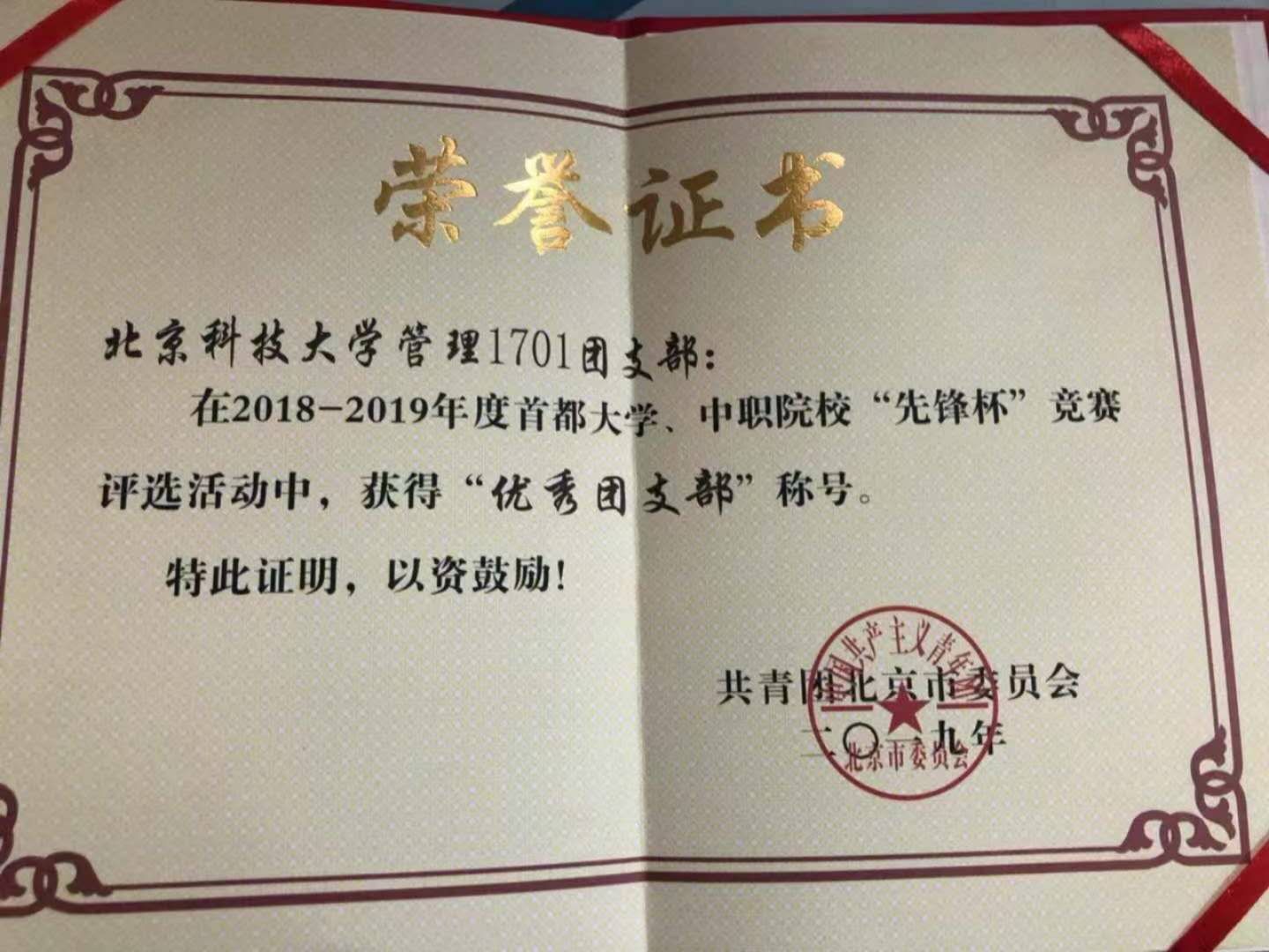 团支部荣获2018-2019年度首都大学、中职院校“先锋杯”优秀团支部、探花视频 2019-2018和2017-2018年度优秀集体称号以及优秀团支部荣誉称号,支部一直在努力和奋斗,立志从普通走向优秀,从优秀走向卓越。