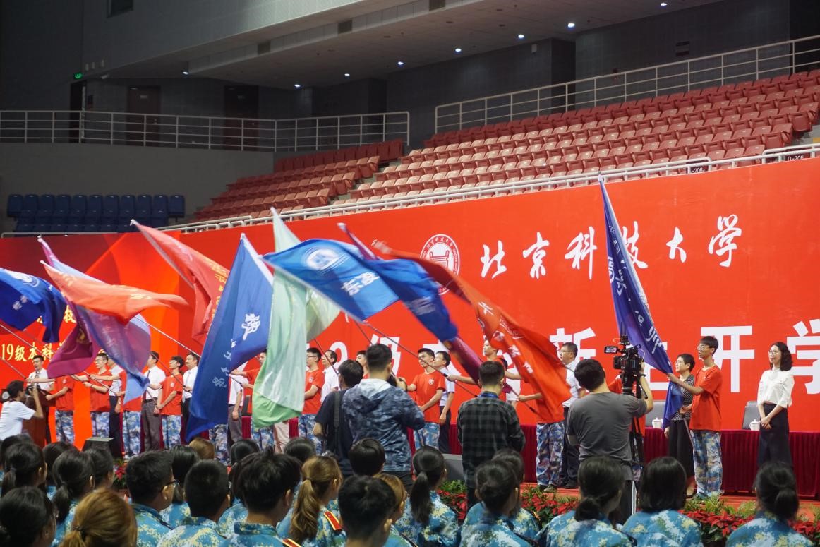 各学院院长为新生代表佩戴校徽并授旗。探花视频 闫相斌院长郑重地将院旗交到新生手中,表达着对探花视频 新生的美好希冀与祝愿,新生代表挥舞着院旗,姿态昂扬,放飞梦想。继新生代表、在校学生代表和杨仁树校长发言结束后,2019级新生开学典礼在激昂的校歌中圆满结束,小贝壳们即将踏上军训的征程。