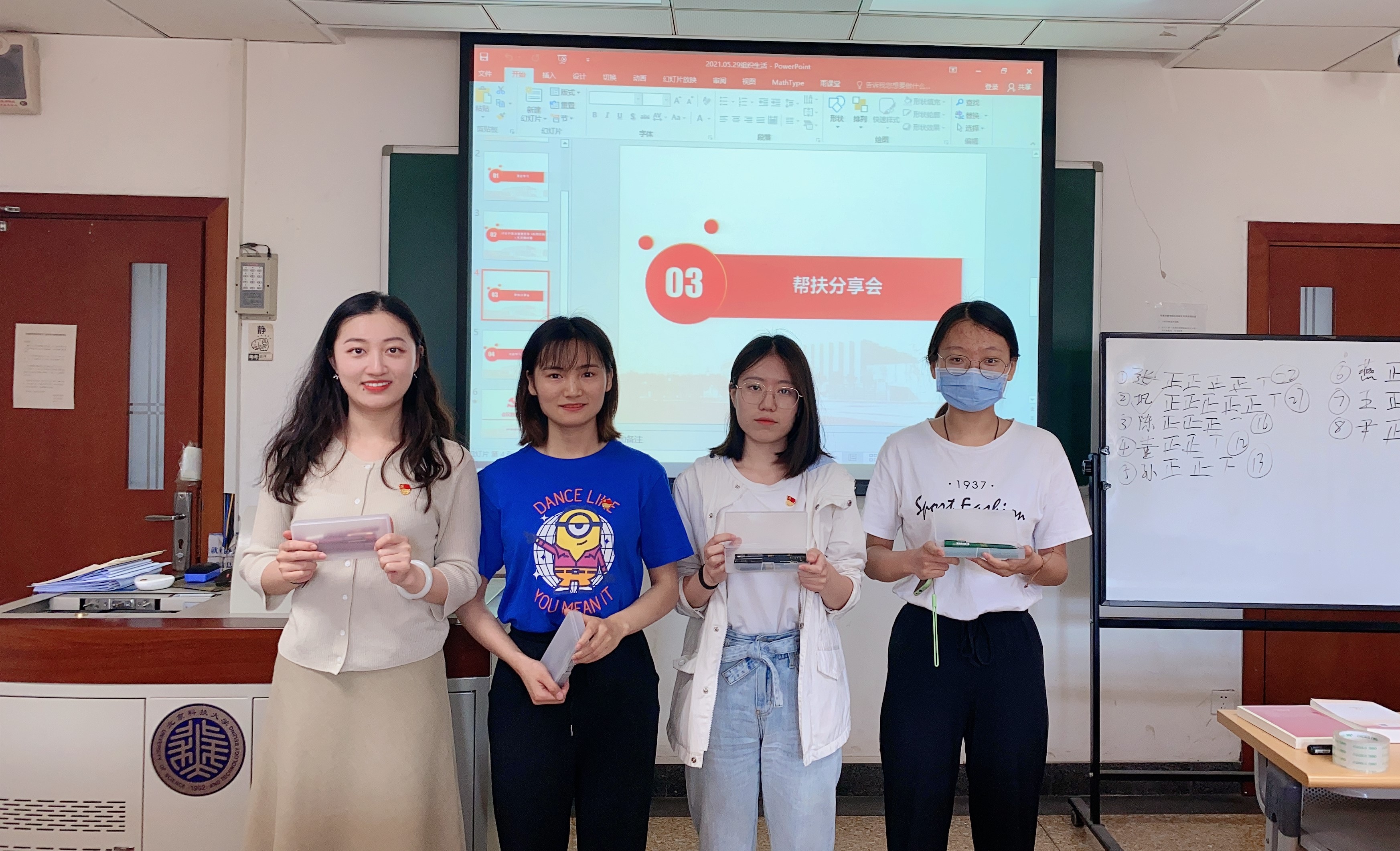 最后是支部特色活动分享会,为响应我校近期大力推进的基层党建“党委强化、支部实化、党员亮化”工程,增强党员党性观念,激发党员意识,管工研党支部在四月和五月开展了“以我之行动,践行为人民服务宗旨”的支部特色活动,鼓励支部党员以不同形式加入到对身边师生、同学朋友、社会人群进行帮扶的队伍中,为人民做小事、办好事、解难事,充分发挥党员的先锋模范作用。