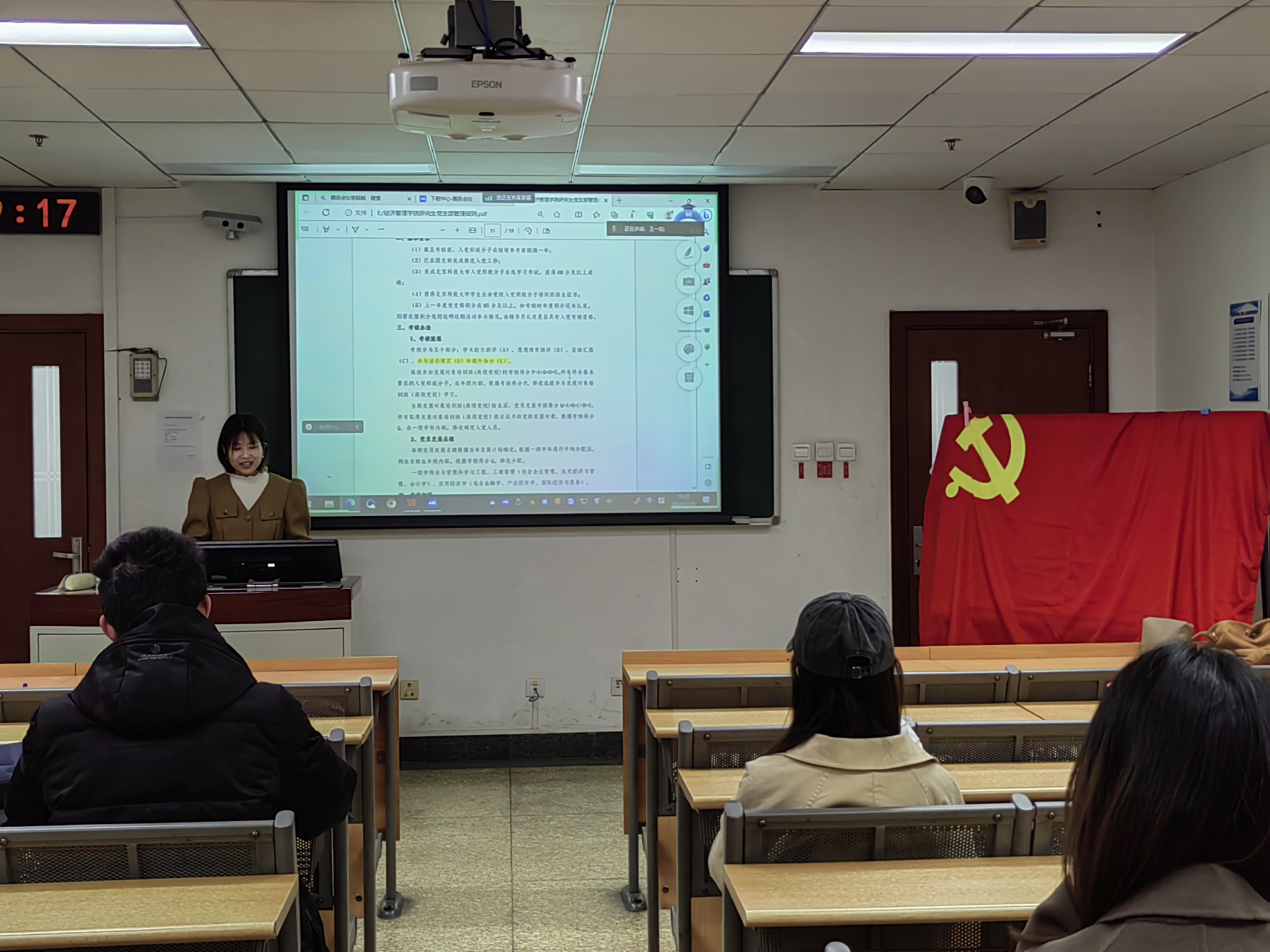 2024年3月29日19:00,探花视频 金融研党支部在经管楼504和管庄教学楼209开展3月组织生活,共有26人参与,其中正式党员17人,预备党员9人。本次活动由金融研党支部书记王一如同志主讲。