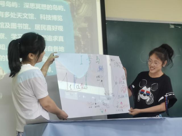 最后,通过探讨“爱好”和“兴趣”在理论和现实案例中的区别,发现兴趣是推动人不断创新突破自己的重要内在动力。为了更进一步加深同学们对职业兴趣的认识,同学们被划分成6个小组开展兴趣岛游戏。在20分钟的时间里,同学们尽情发挥自己的想象力和绘画特长,每个兴趣岛都充分彰显了各自岛屿的特点。在对各自岛屿的注解说明之后,辅导员李响详细讲解了6个兴趣岛代表6种霍兰德职业兴趣类型。该游戏帮助同学们找到了自己的职业兴趣。