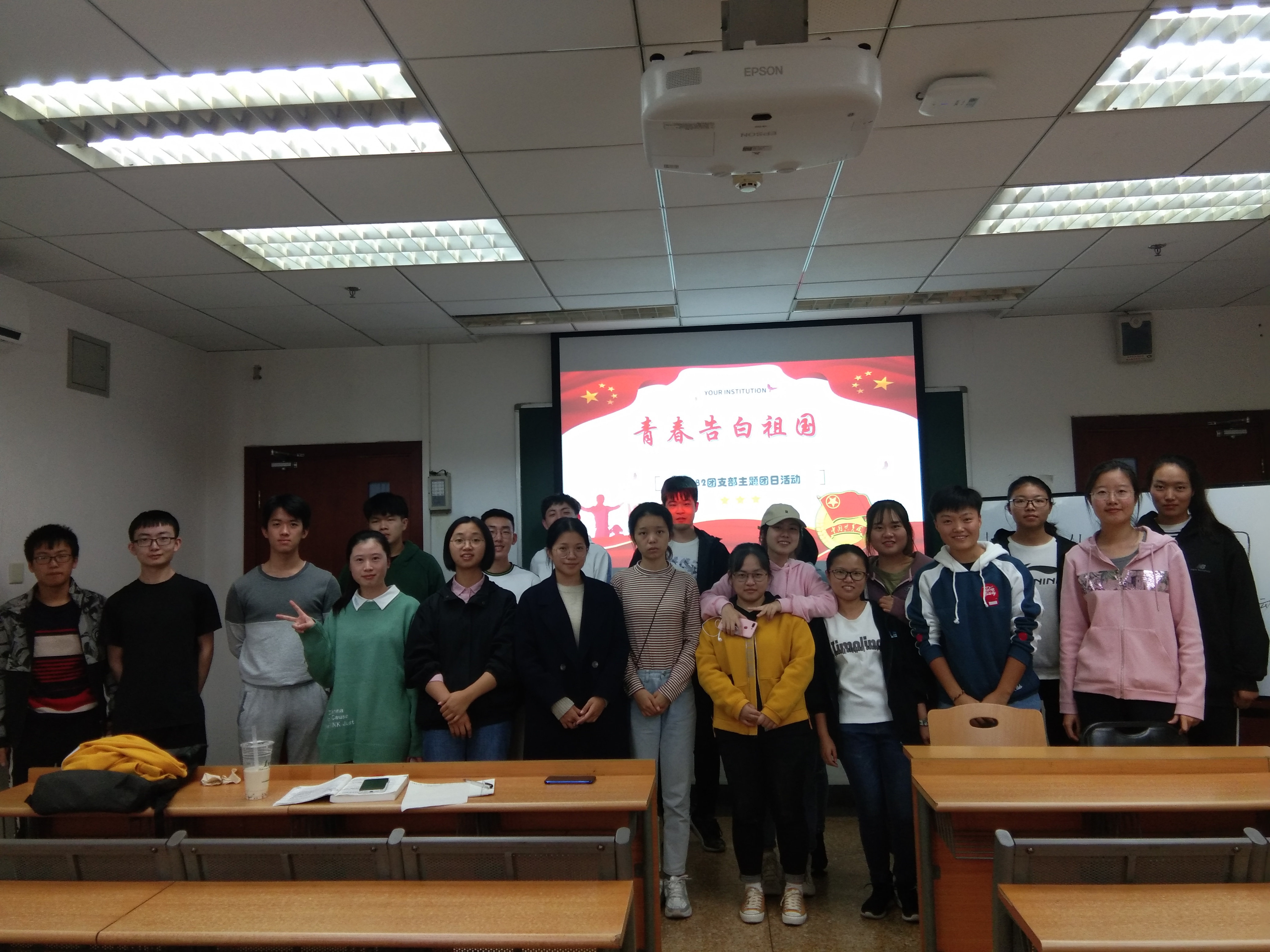 为深入学习贯彻落实习近平新时代中国特色社会主义思想和党的十九大精神,培育和践行社会主义核心价值观,在新中国成立70周年之际,东凌探花视频 工管182班于10月15日在经管楼508开展了“青春告白祖国”主题团日活动。