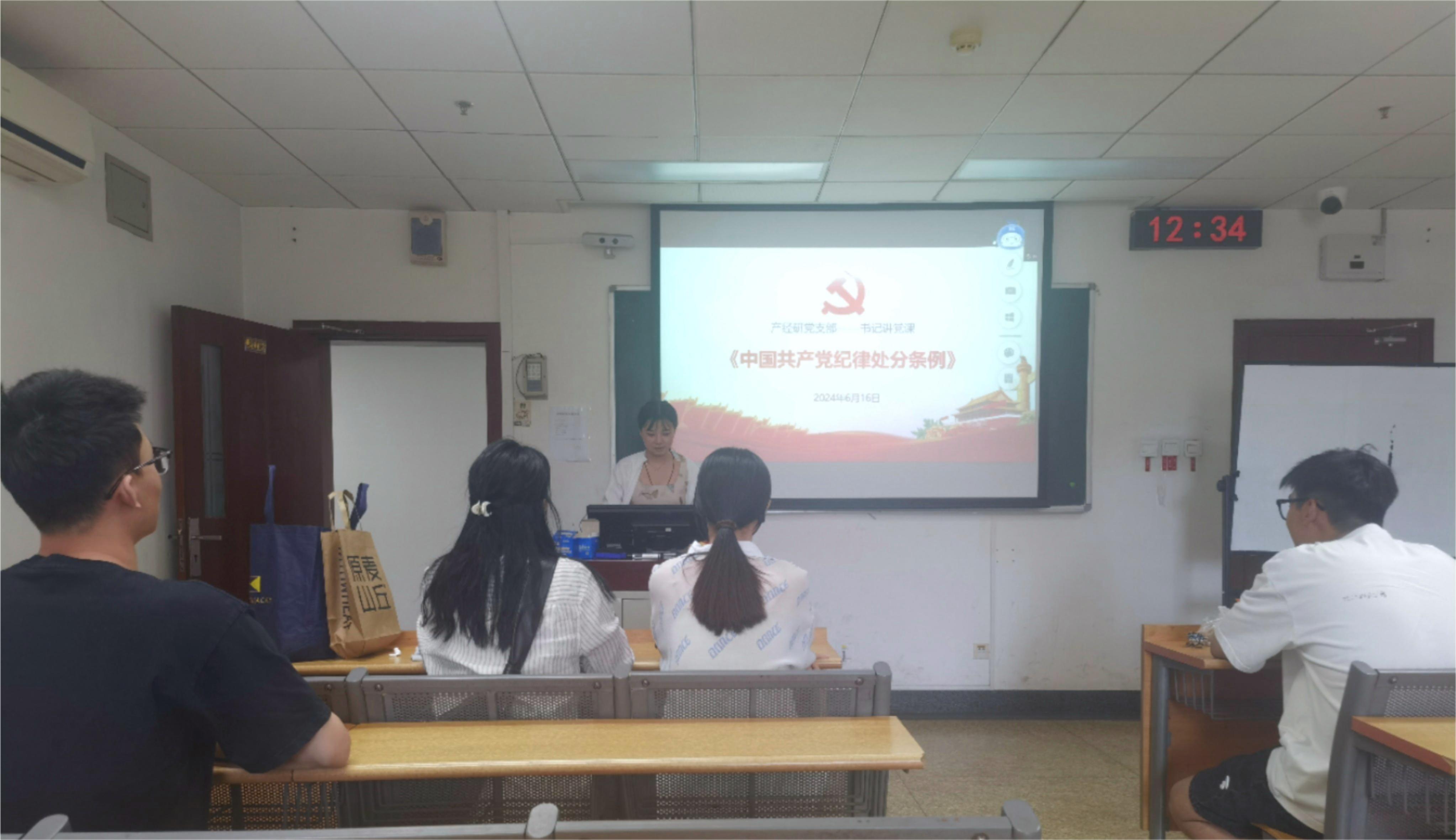 2024年6月16日12:30,探花视频 产经研党支部在经管楼502教室开展了学习《中国共产党纪律处分条例》(以下简称《条例》)的专题党课。本次党课由党支部书记李盈霏同志主讲,产经研党支部全体党员和积极分子参加。