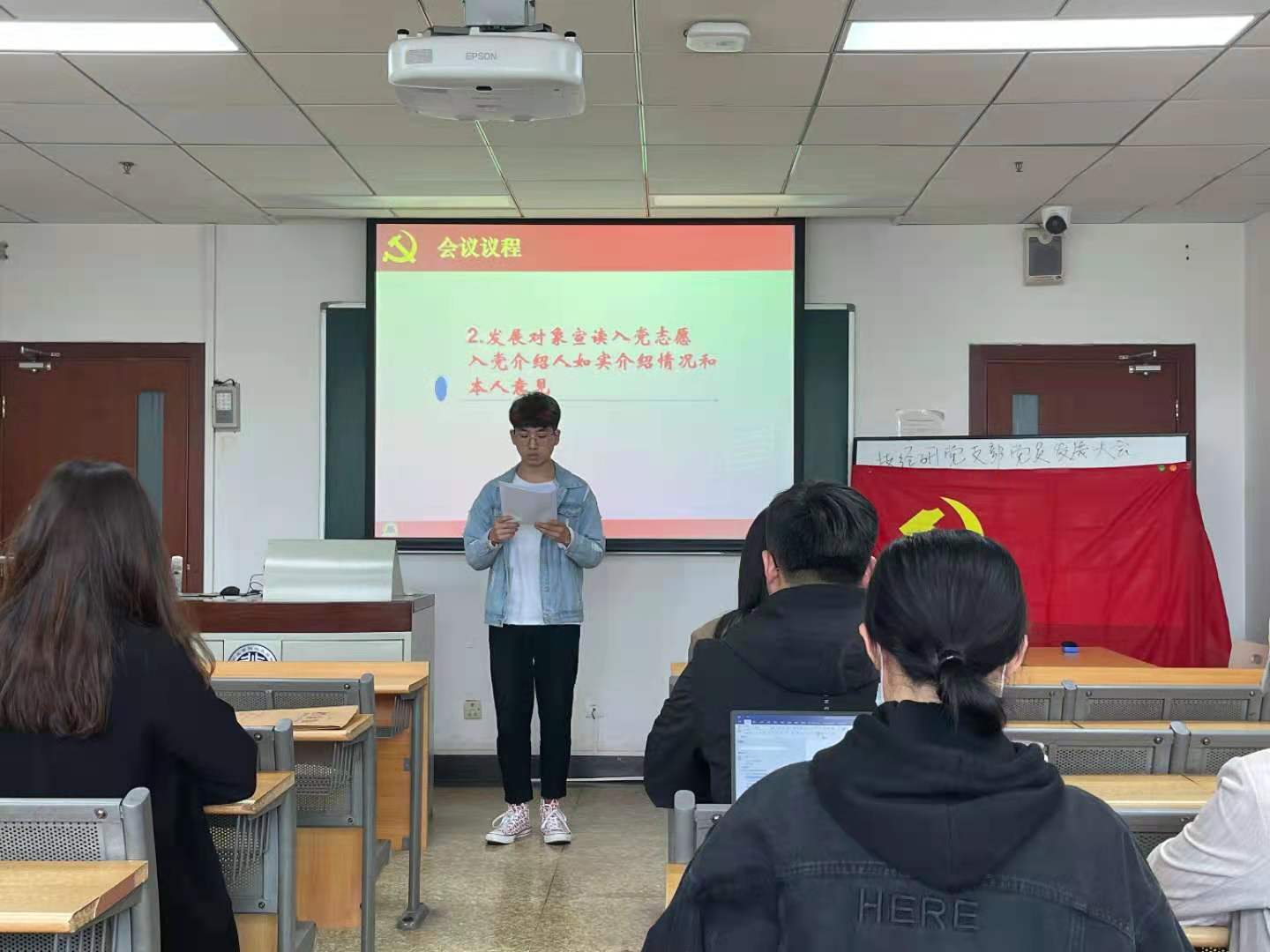 接下来,入党介绍人赵紫倩同志和王爽同志分别介绍了常明星同志一年来在思想、学习、工作等各方面的情况,介绍了支部对常明星同志的培养考察过程。与会党员对其进行了充分讨论,指出其优缺点,同时提出改进建议。随后,大会提名叶云婷同志为监票人,李康同志为计票人,由正式党员进行现场无记名投票,未到场正式党员手写书面表决,全票通过接收常明星同志为中共预备党员。