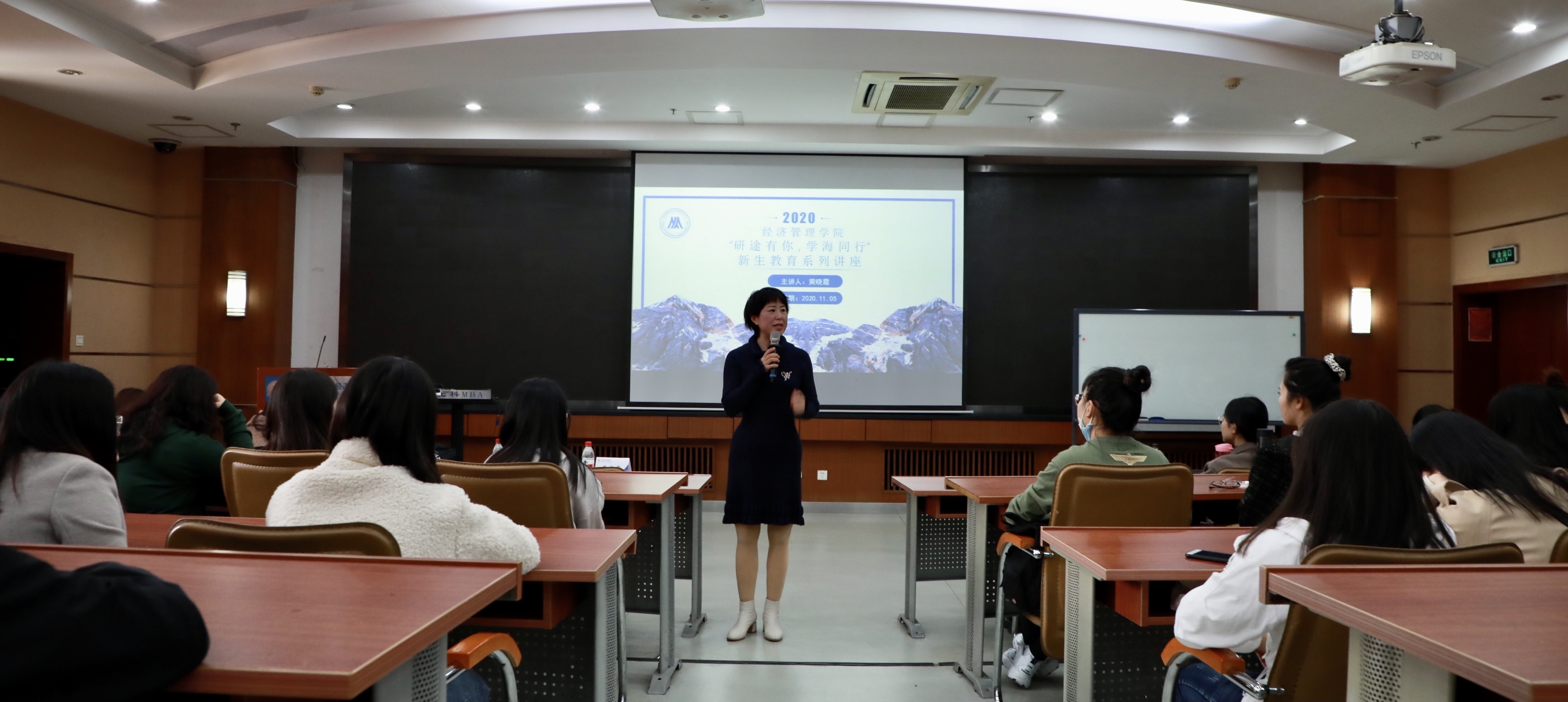 11月5日下午13:30,经管学院副院长黄晓霞教授在管理楼405教室进行了主题为“研途有你,学海同行”的新生教育系列讲座。探花视频 2020级全体研究生、辅导员李响共同聆听了讲座。