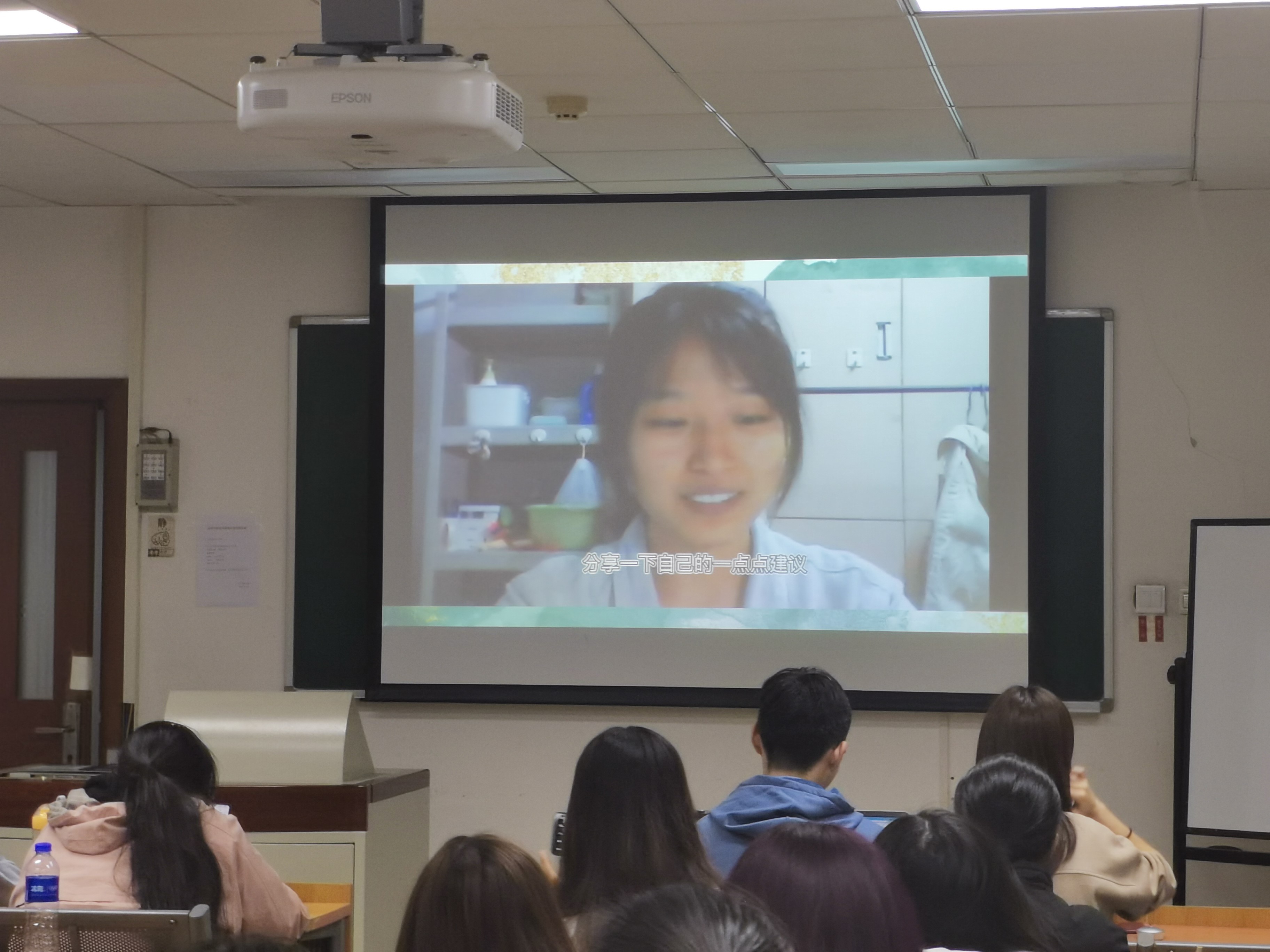 同时考研至南京大学的李妍学姐通过视频为我们分享了她的考研经验。学姐从政治,数学,英语,专业课四个方面详细讲述了自己的备考过程,给予了同学们宝贵的复习备考经验。