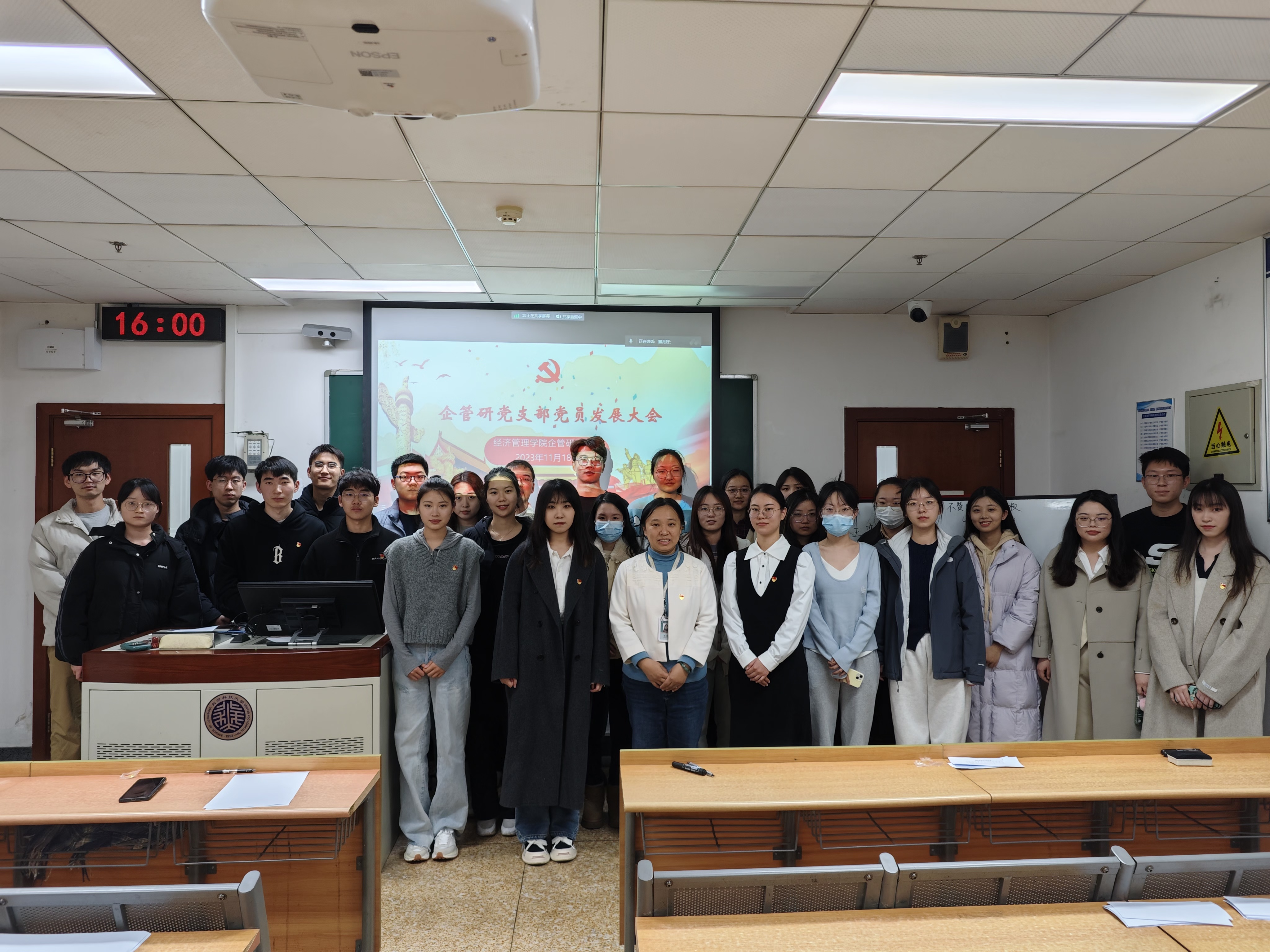 2023年11月18日15:00,企管研党支部顺利开展党员发展大会。此次活动在经管楼504开展,会议由企管研党支部书记蔡月好主持。本次会议应到党员38名,其中正式党员34名,预备党员4名,实到会正式党员32名,预备党员4名,因病因事请假2名,实到会正式党员人数超过支部有表决权党员的半数以上,符合发展大会开展要求。