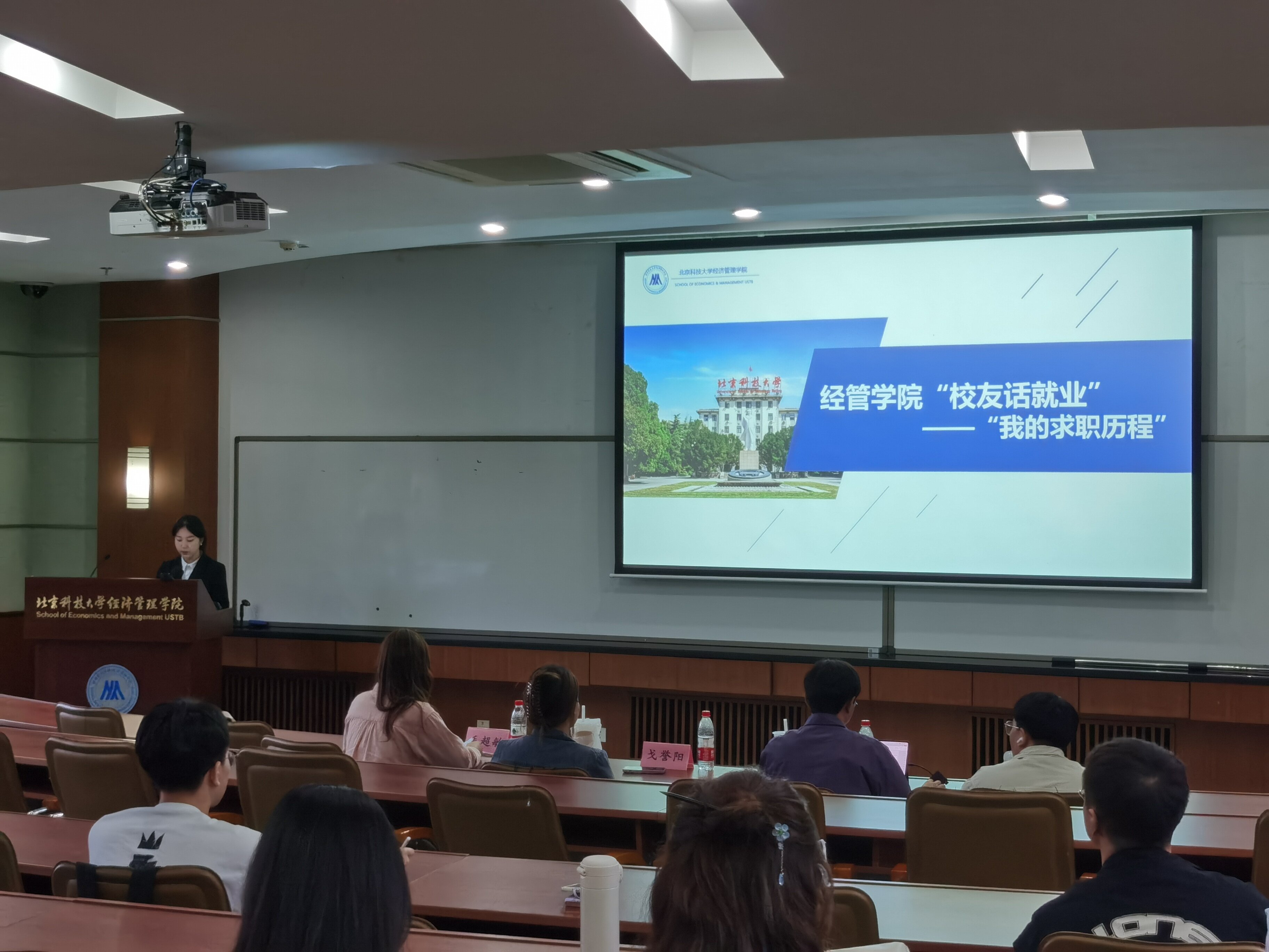两位嘉宾受邀回到学校讲述自己的求职历程,分享求职经验,以自身经历为学弟学妹求职提供参考为职业道路发展做铺垫。