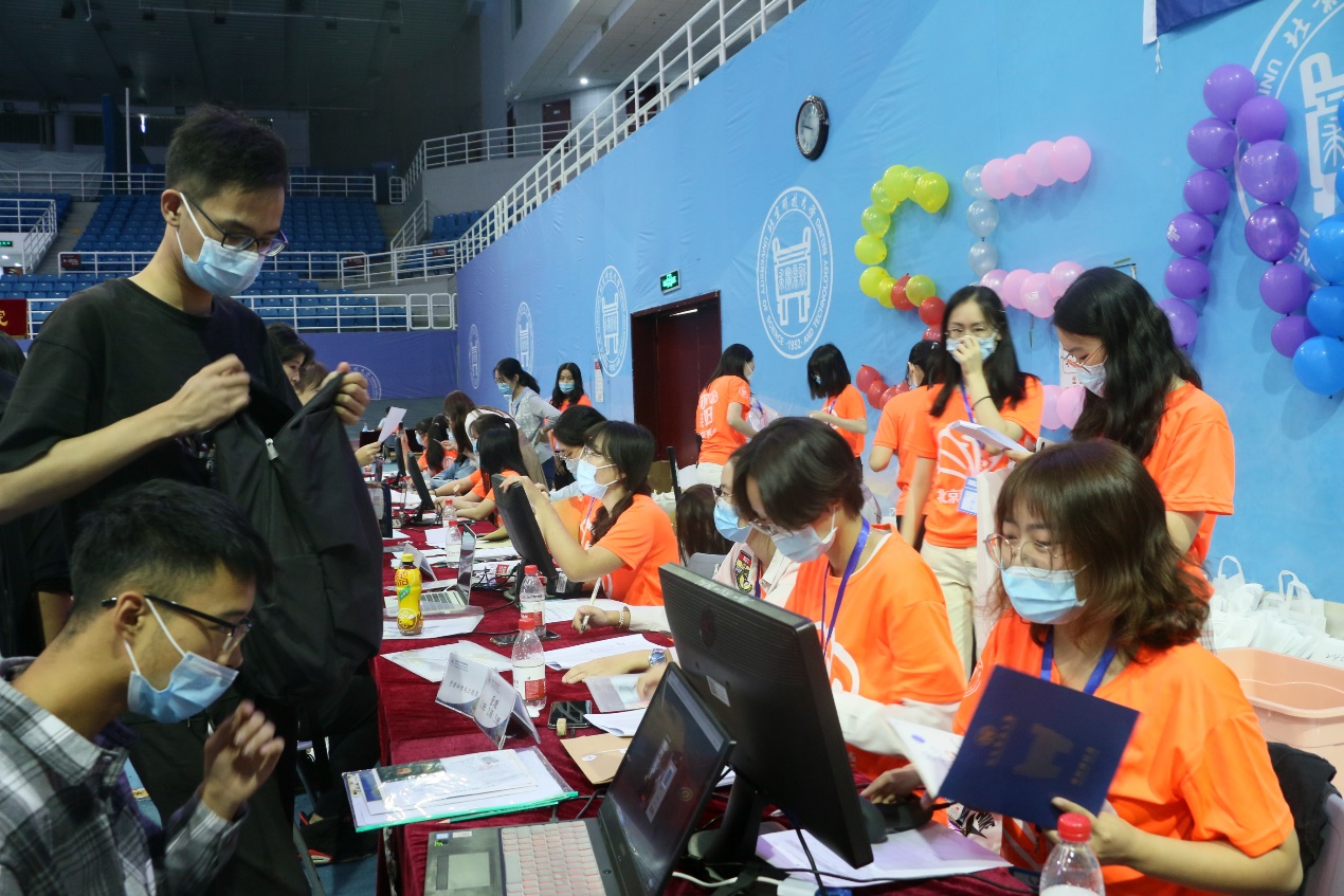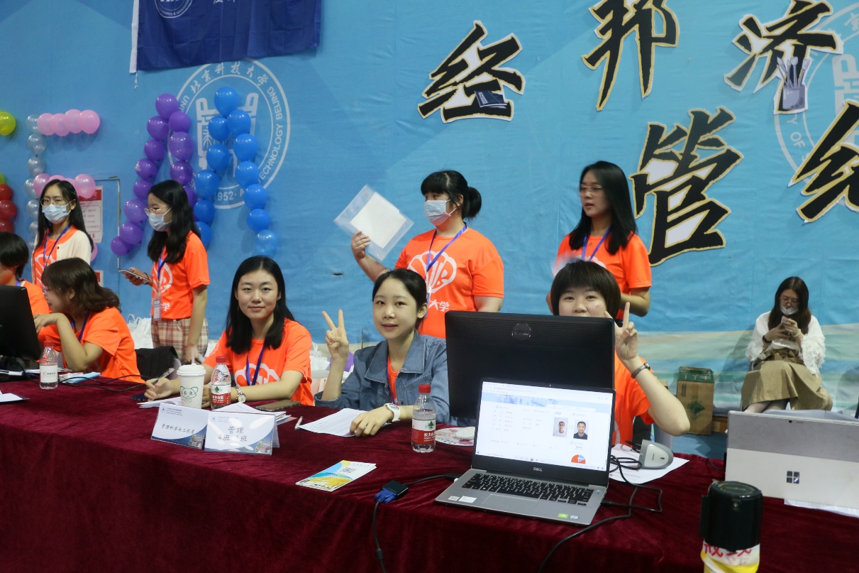 经历了9月13号的培训后,149名迎新志愿者于9月16日早上7点正式开展迎新工作。他们身着橘黄色迎新志愿服,面带微笑热情洋溢地在各自的岗位上准备工作。他们忙碌却有序地开始调试设备,确认流程,熟悉场地,为迎接新生做好充足的准备。