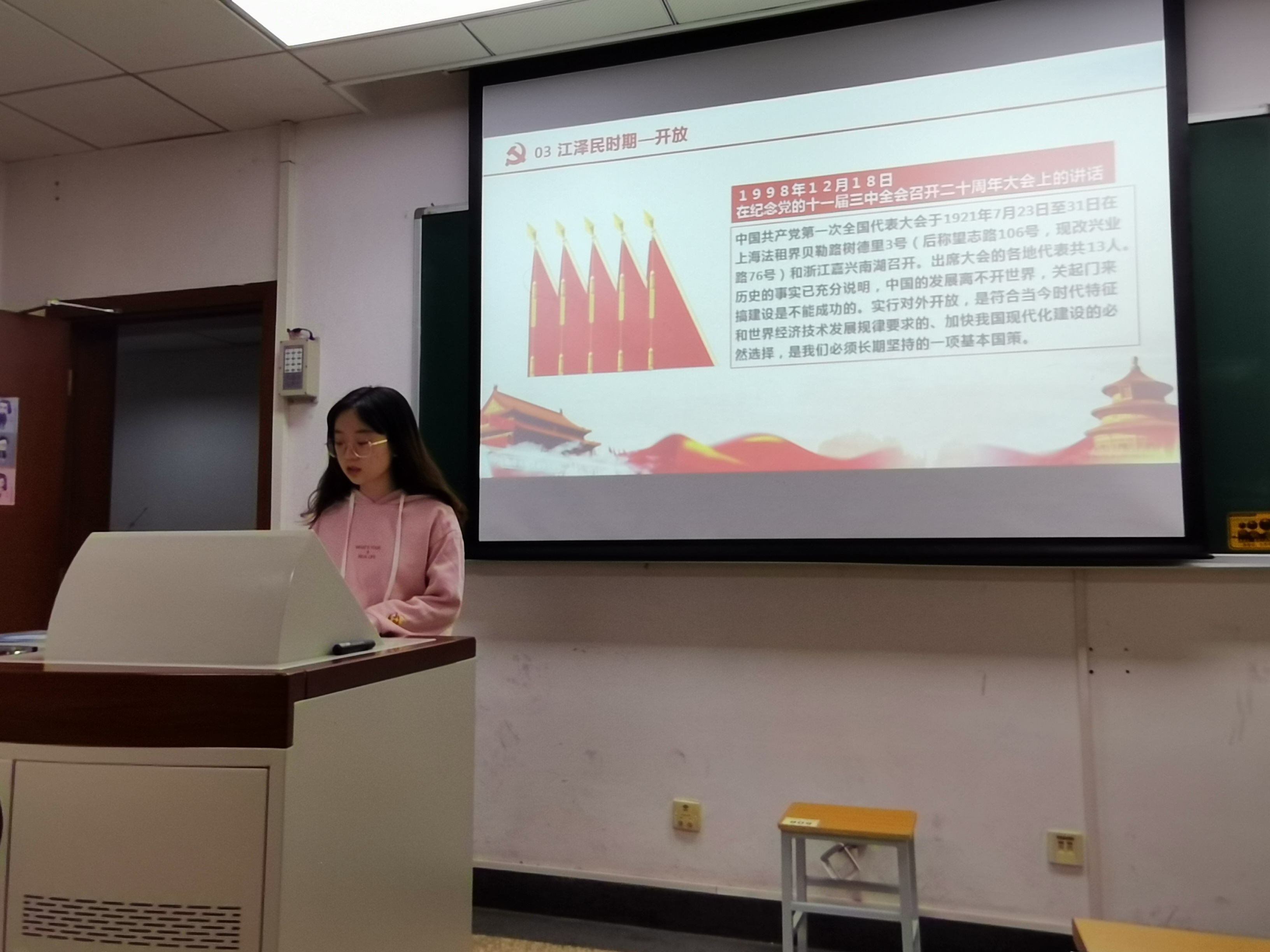 经管本科低年级党支部于11月10日19:30在经管楼506开展“学四史,谈感悟”党员讲党课——新中国史活动。18级、19级、20级预备党员、积极分子参与了此次活动。