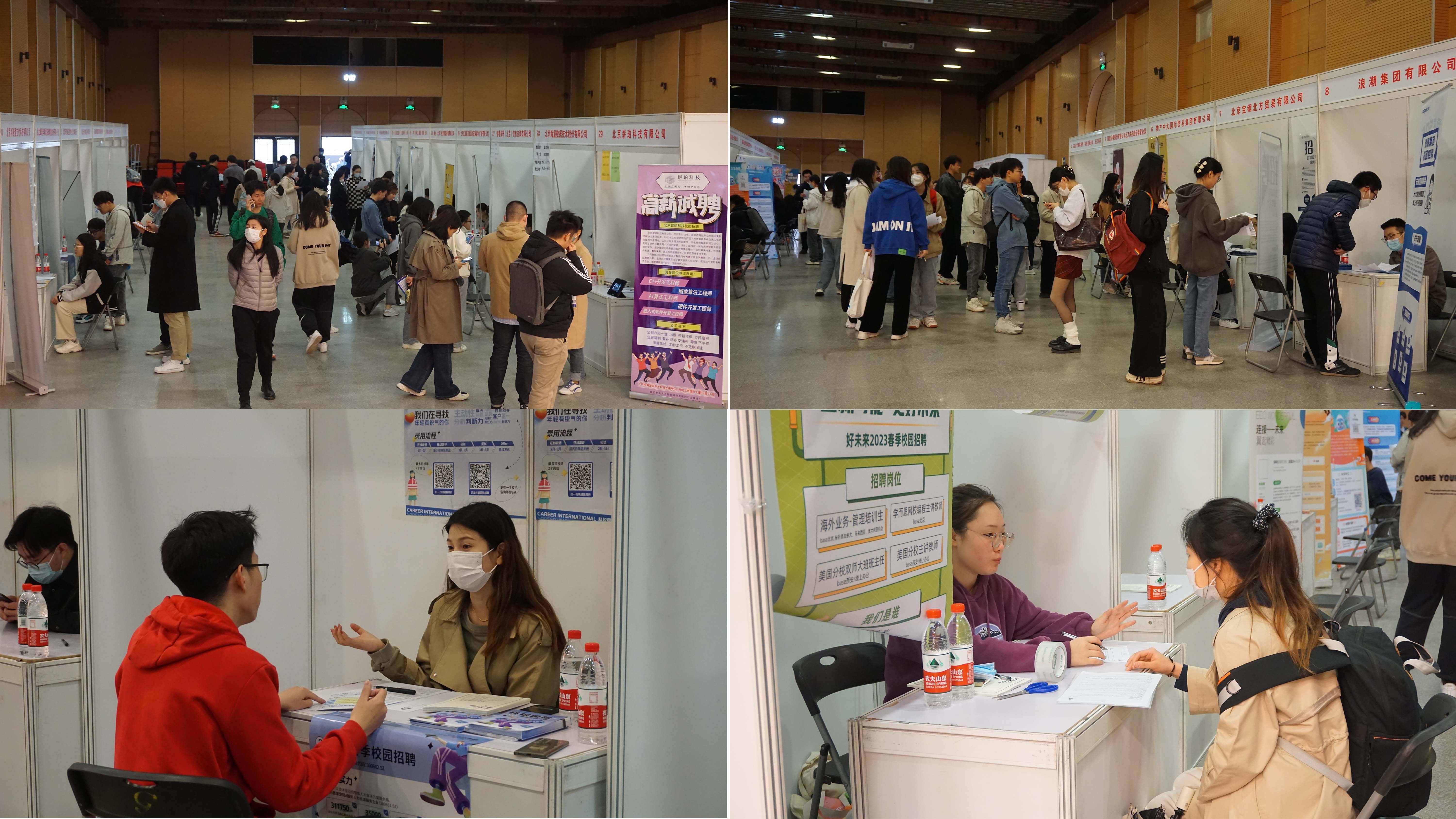 此次双选会得到了学校就业指导中心和校友企业的大力支持,包括中国银行股份有限公司北京市分行、中国光大银行股份有限公司、普华永道中天会计师事务所(特殊普通合伙)、极兔速递有限公司等在内的35家用人单位参会,涵盖证券、银行、基金、咨询、信息、制造、钢铁、教培等多个行业,覆盖探花视频 所有专业方向,为毕业生提供更为精准的岗位选择,现场氛围火爆。