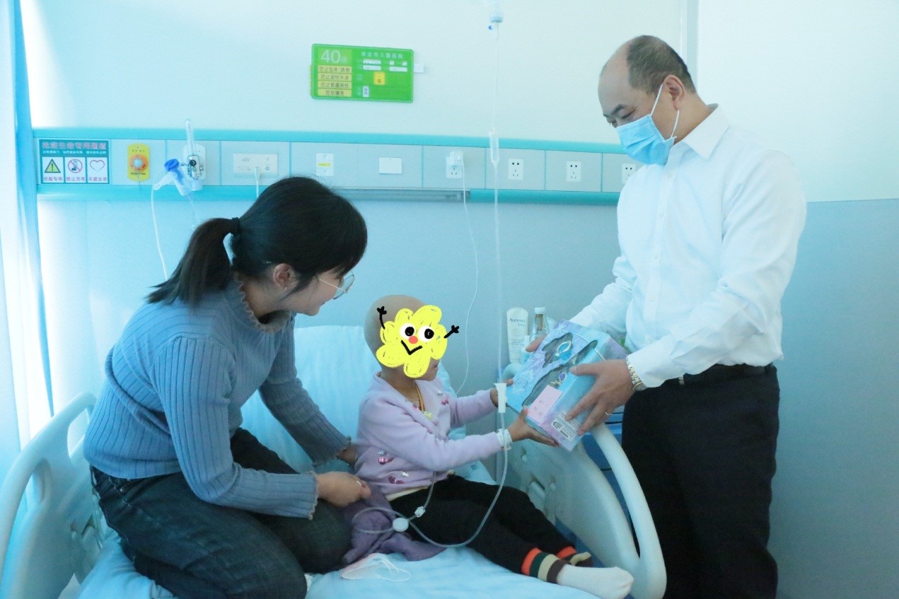 10点钟,曾总和志愿者们化身“礼物投递员”,走病房,送礼物。