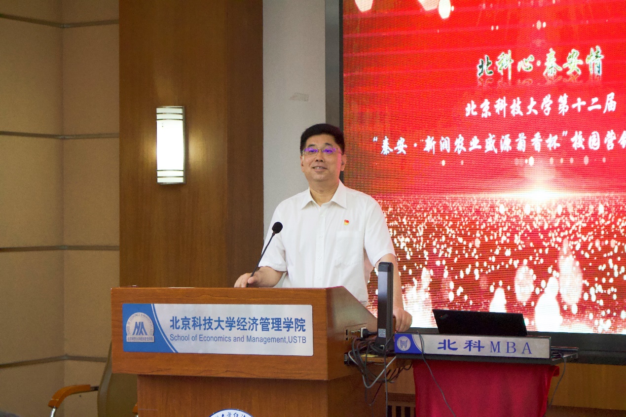 孙景宏对经管学院多年来在助力秦安脱贫上的努力表示肯定,并表示学校历来高度重视秦安县帮扶工作,即将开启助力秦安农业农村现代化建设的新征程。孙书记指出,营销大赛是学生专业能力实践和力行服务社会的重要途径,希望广大师生心系祖国、矢志报国,躬行实践、学在实处,开拓进取、追求创新,为秦安建设、学校发展、社会进步做出新的贡献。