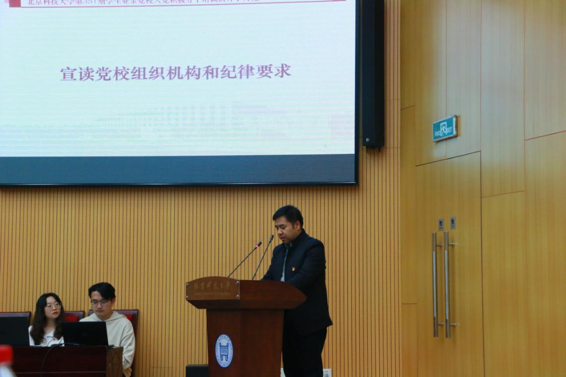 接着由化学与生物工程学院党委副书记苏靖老师宣读党校组织机构和纪律要求,党校校长为探花视频 党委书记武森、化学与生物工程学院党委书记曾芳,党校副校长为探花视频 党委副书记倪宇,化学与生物工程学院党委副书记苏靖。党校办公室设在经管学院学生工作办公室,经管学院党建辅导员刘璐、化学与生物工程学院党建辅导员杨涵统筹办公室工作。