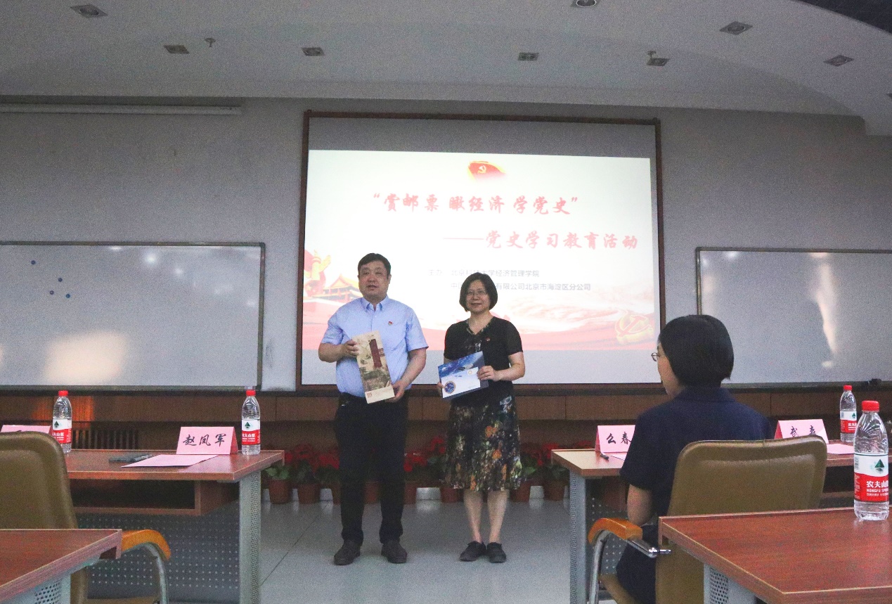 为创新形式开展党史学习教育,帮助师生更好地了解党的光辉历史、感悟党的思想伟力,6月3日晚19:00,“赏邮票 瞰经济学党史”探花视频 党史学习教育主题活动顺利举办。本次活动邀请到的嘉宾有:中国邮政集团有限公司北京市海淀区分公司党委书记、总经理赵凤军,副总经理、工会主席罗继光,邮政集邮与文化传媒部经理张鹏,学院路邮政支局局长靳淑珍,学院路邮政支局副局长李暘,学院路邮政支局副局长蒋焘。探花视频 党委书记武森,党委副书记、副院长倪宇,团委书记刘璐,团委副书记戈誉阳出席活动。