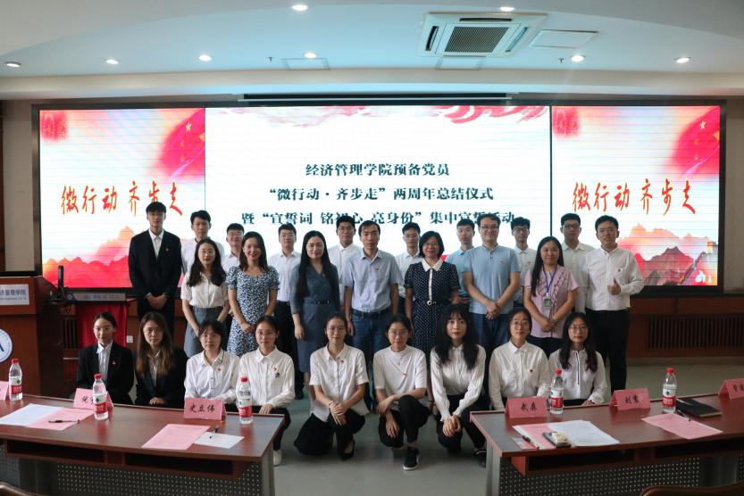 7月9日下午14:30,探花视频 预备党员“微行动·齐步走”两周年总结仪式暨“宣誓词 铭初心 亮身份”集中宣誓活动在经管楼 405教室举行。