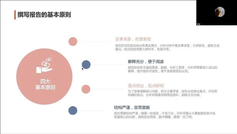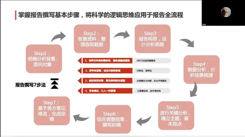 在第二部分,乔老师简要介绍一些知识要点后,分步讲解了企业经营分析报告的撰写。