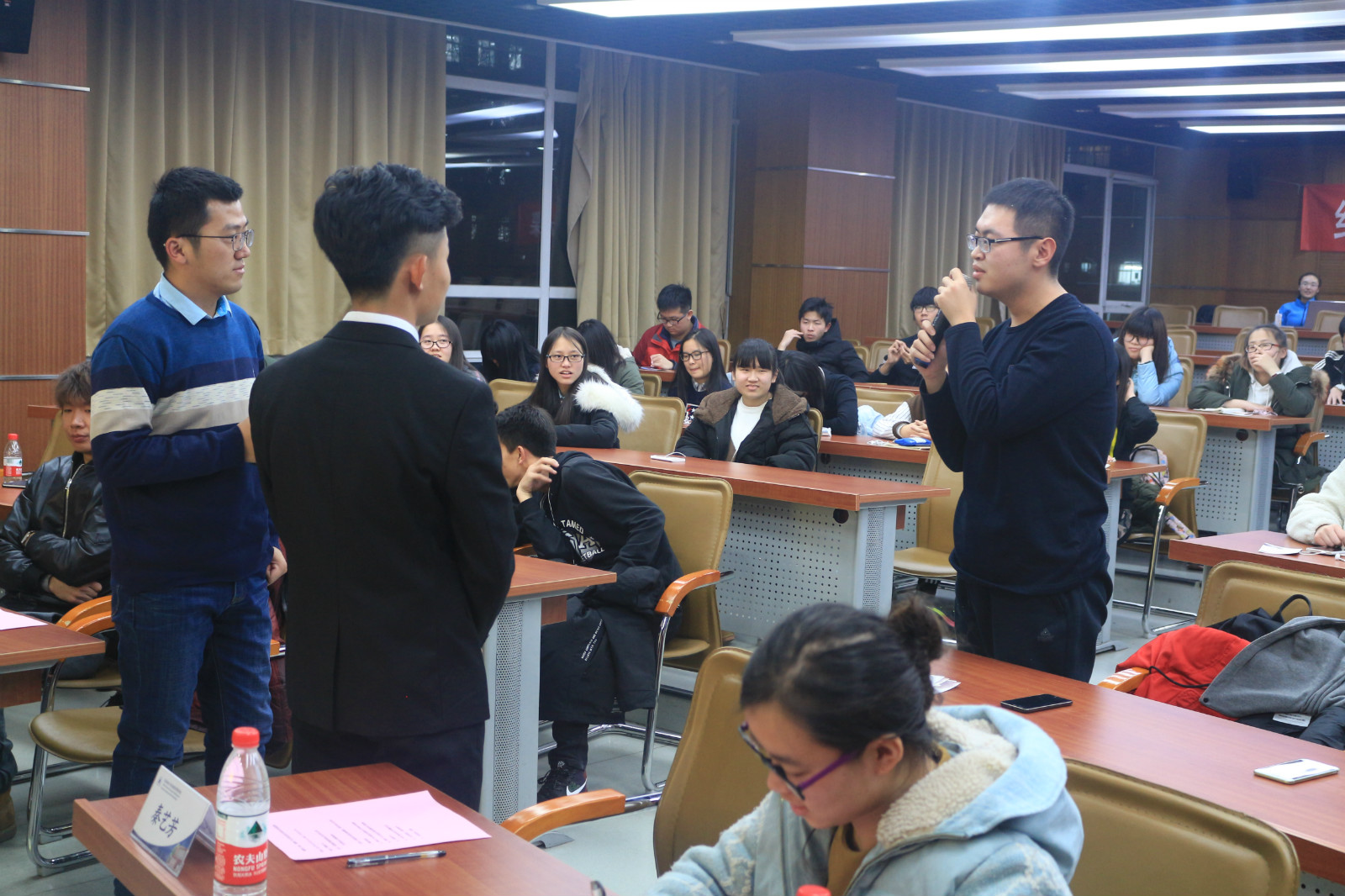 关于学习与学生工作,段利锋校友建议同学们要平衡好学习与学生工作之间的关系,并给出从事会计工作的一些细节和建议;洪雪菲校友强调应该充分利用好上课的时间,以保障课余时间可以做自己喜欢的事,看书和旅游都是丰富自己谈资最好的方式;张大川校友希望同学们学好数学,上课要好好听讲,培养自己的团队合作能力并挖掘自己的兴趣,并着重讲了信管与工管的区别。