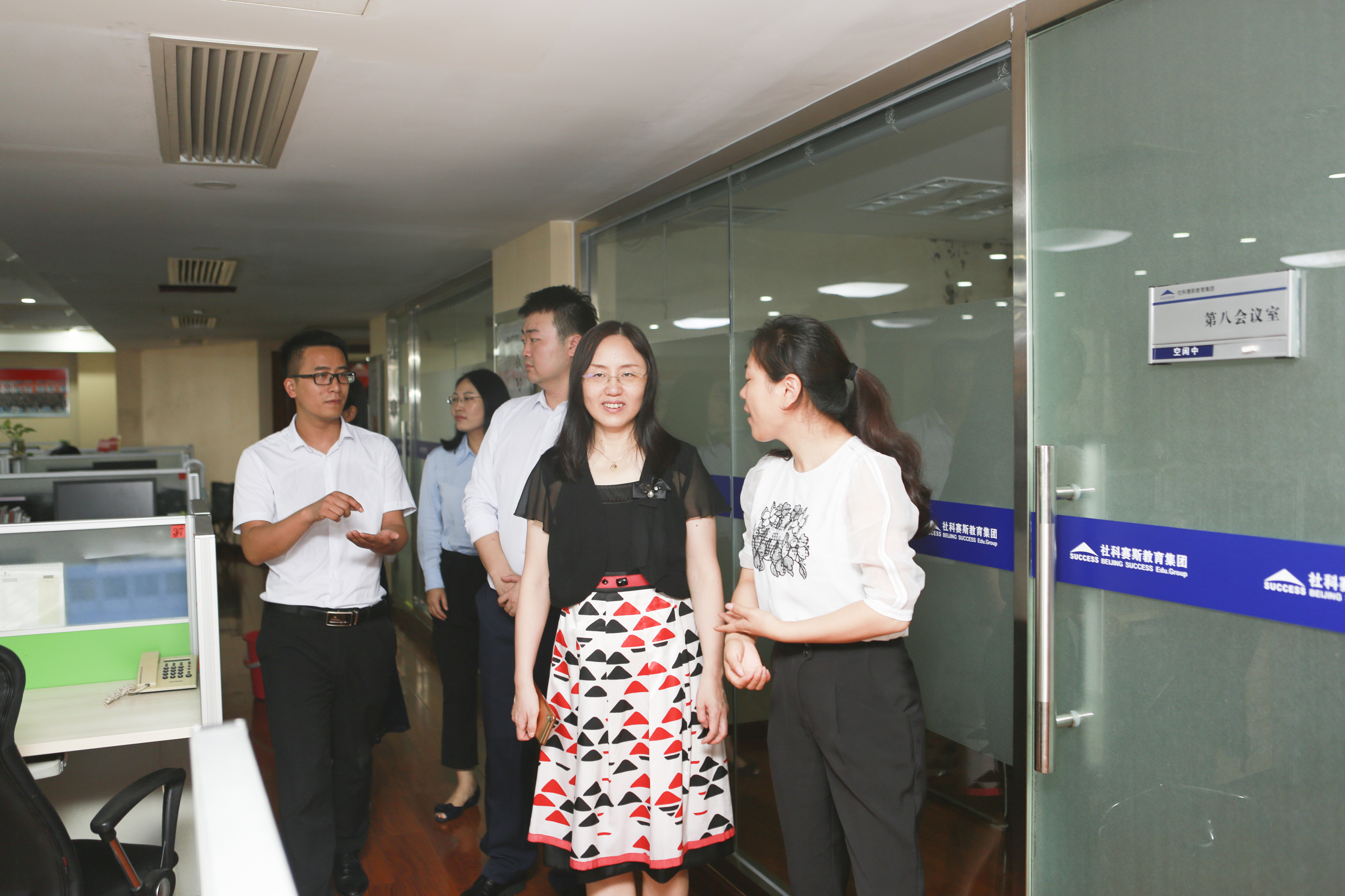 在社科赛斯教育集团校长助理兼MBA事业部总监刘春茶女士的引领下,李晓静主任一行首先对社科赛斯教育集团的公司环境进行了参观,并就公司探花视频和发展历程以及员工风采进行了整体了解。