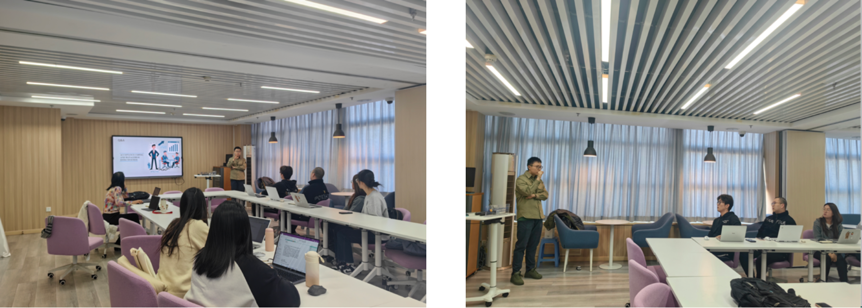 讲座以“A Mind That Does Not Abide in Anything: How Leader Acceptance Coping when Facing Stressors Enhances Managerial Creativity and Consideration via Cognitive Flexibility”为主题,聚焦领导者在压力情境下的应对方式及其对管理行为的影响。刘海洋博士重点介绍了领导者在面临压力时采用“接纳应对”(acceptance coping)策略如何通过提升认知灵活性,进一步促进其创造力与体恤行为的发展。报告从概念构建与理论推演展开,结合访谈、实验等多种研究方法的实证结果,展示不同情境下领导者应对方式的变化规律,并讨论其对组织管理实践的启示。在交流过程中,与会教师围绕研究设计、变量测量及组织行为研究趋势提出了具体问题,并与主讲人展开了深入探讨;多位研究生也就数据收集方法与未来研究方向进行请教。现场互动充分,有助于师生加深对相关研究主题的理解,讲座取得了良好的学术交流效果。
