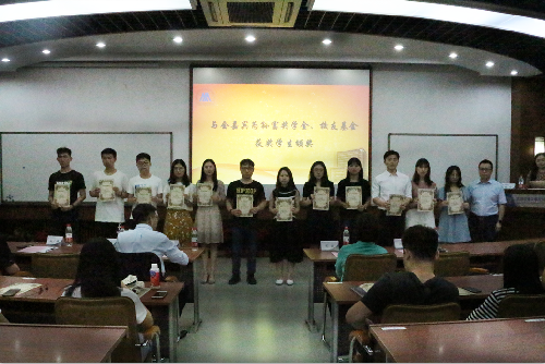 随后,倪宇宣读了获奖学生名单,由与会领导、嘉宾共同为获得孙富奖学金、校友基金、明天助学金的同学颁发证书。