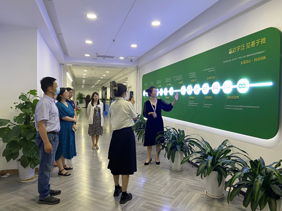 下午两点整,线下人员由会议室步入公司大厅,云参观开始,同学们跟随镜头,聆听泛微市场总监李焕静的讲解,她介绍了泛微多年来的部分合作伙伴,浏览了泛微的发展史,以及21年来获得的荣誉与软件资质等,同学们慢慢领略到泛微的核心竞争优势所在——志达宇泛、见著于微,永葆初心、持续创新。