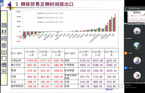 李拥军研究员分别从钢铁产业的发展概况、钢铁贸易及钢材间接出口和相关建议三个方面展开了报告。