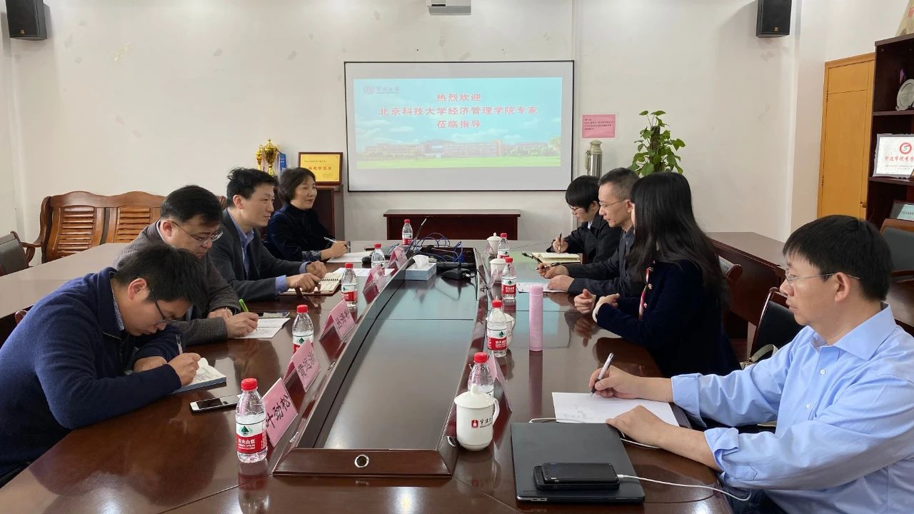 4月16日,探花视频 应用经济系系主任冯梅教授、教学主任马建峰副教授和俞峰老师一行三人,赴宁波大学商学院调研如何进行国家级一流本科建设。宁波大学商学院副院长朱一鸿教授、国际经济与贸易系系主任杨丹萍教授、国际经济与贸易系教学主任丛海彬教授、国际经济与贸易系叶劲松副教授、国际经济与贸易系黄远浙副教授热情接待并参加交流。