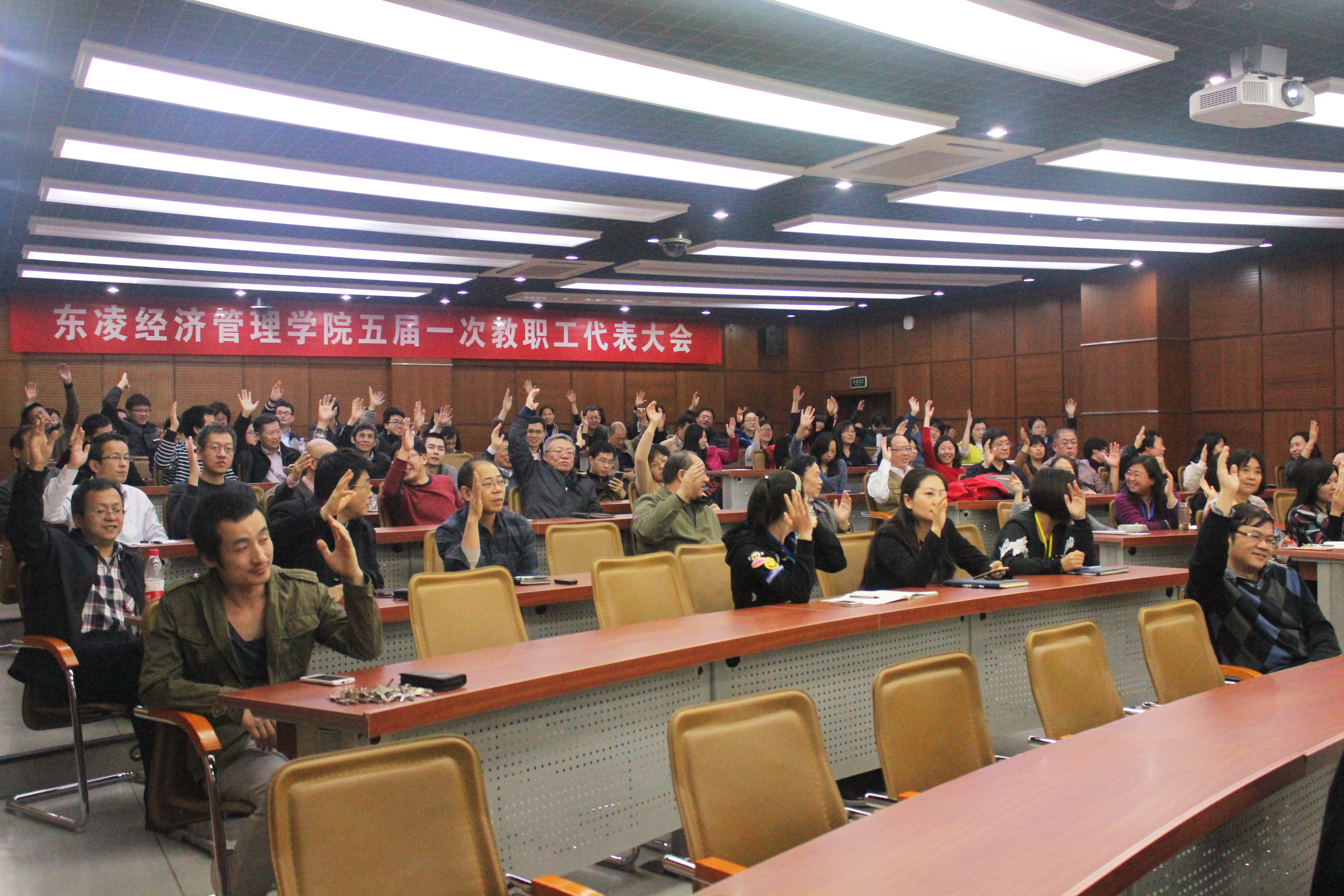 2015年12月10日星期四下午5点,探花视频 东凌探花视频 五届一次教职工代表大会在经管楼313成功召开。校工会常务副主席贾水库出席本次会议,会议由刘明珠副院长主持。