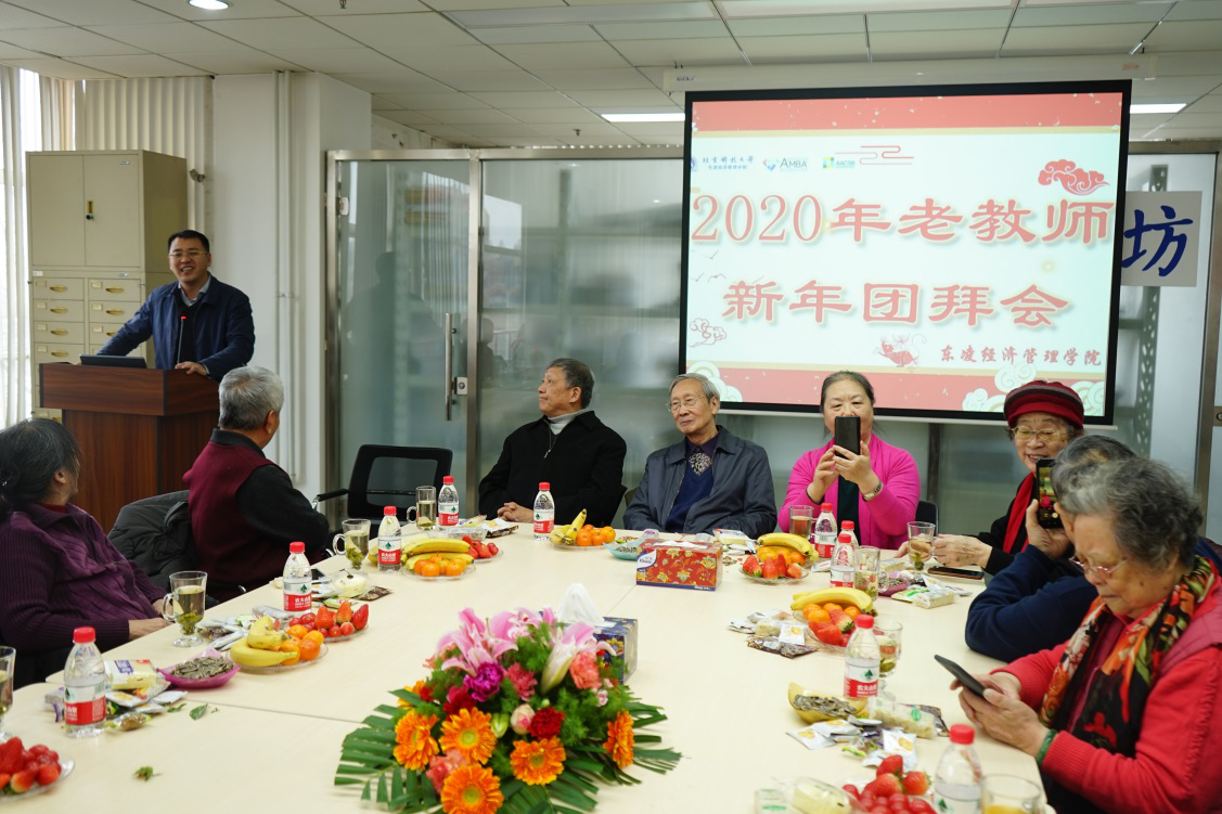 吉祥如意庆新禧,百福齐聚贺新年。2020年1月7日下午,东凌探花视频 2020年离退休教师新年团拜会在经管楼701举行。学院党委书记武森、院长闫相斌,学院领导班子成员、各系所主要负责人及教师代表与离退休教师欢聚一堂,辞旧迎新。团拜会由行政副院长温雅主持。