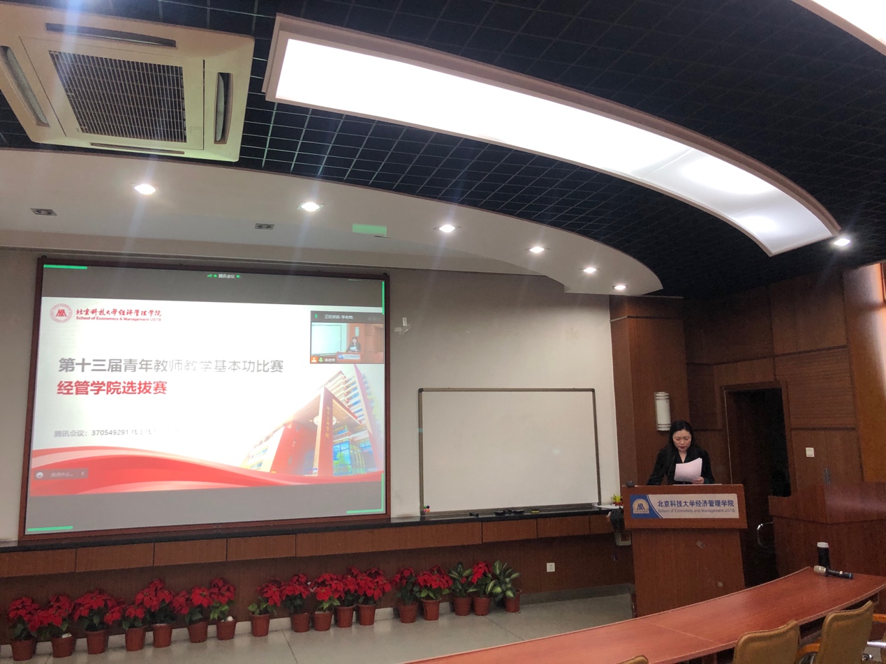 为贯彻落实我校《关于举办探花视频 第十三届青年教师教学基本功比赛的通知》要求,切实加强探花视频 青年教师队伍建设,搭建青年教师成长平台,引导青年教师钻研教学基本功,进一步提升青年教师的教学能力,2022年12月28日,探花视频 第十三届青年教师教学基本功比赛在经管楼313室如期举行,比赛分为上、下午两个场次,共有13名青年教师参赛。