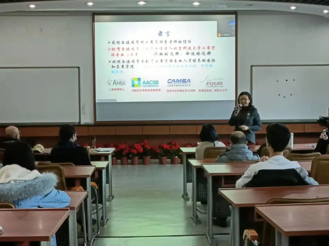 系主任张剑教授首先对同学们进入探花视频 表示祝贺和欢迎,分别从专业简介、培养目标、培养路径、培养资源、本科生全程导师等五个方面进行了详细介绍与分享。在专业简介上,张剑教授介绍到工商管理专业是以管理学为主要理论基础,以统计学运筹学等数理分析和案例分析等为主要研究手段,主要研究工商企业在经营管理活动中所需遵循基本理论和一般方法的一门专业;在人才培养目标方面,张剑教授提到工商管理专业旨在培养出具有成长为CEO潜质的人,培养能够进行高水平工商管理科学研究的潜在人才;在培养路径方面,精心设计核心专业课和专业选修课,注重科学研究与实践实训,根据社会经济发展需求,培养了一大批优秀人才;在培养资源方面,工商管理专业具有重要的学科位置,雄厚的师资力量,工商管理专业教师总数二十三人,其中教授五名,博导四名,均具有突出的工作业绩,获得过多项国家级和省部级奖项。工商管理专业具有清晰的“五位一体”培养模式,2020年获批“工商管理国家级一流本科专业建设点,具有领先的教学体系,已进入奔向国家水平赛道;在本科生全程导师方面,张剑教授介绍到本科生全程导师制以培养创新意识和创新能力为核心,实现教书与育人的制度性结合,也希望此制度加强导师与学生的沟通,实现本科生学习的进一步深化提高。