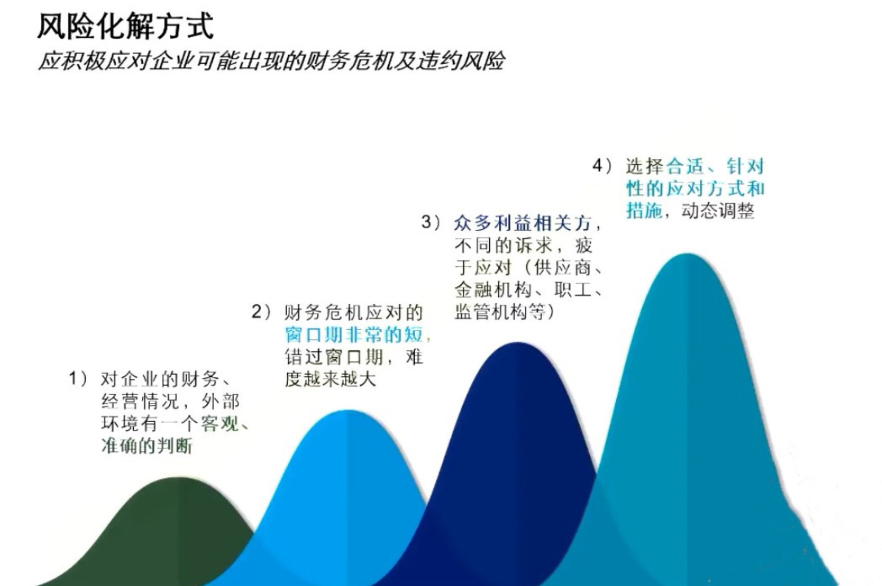 债务化解的方式,不论是哪一种方式,都是一个目的,企业社会效益的最大化,减少社会财富损失,修复企业信用,这也是我们选择的主要考虑因素。