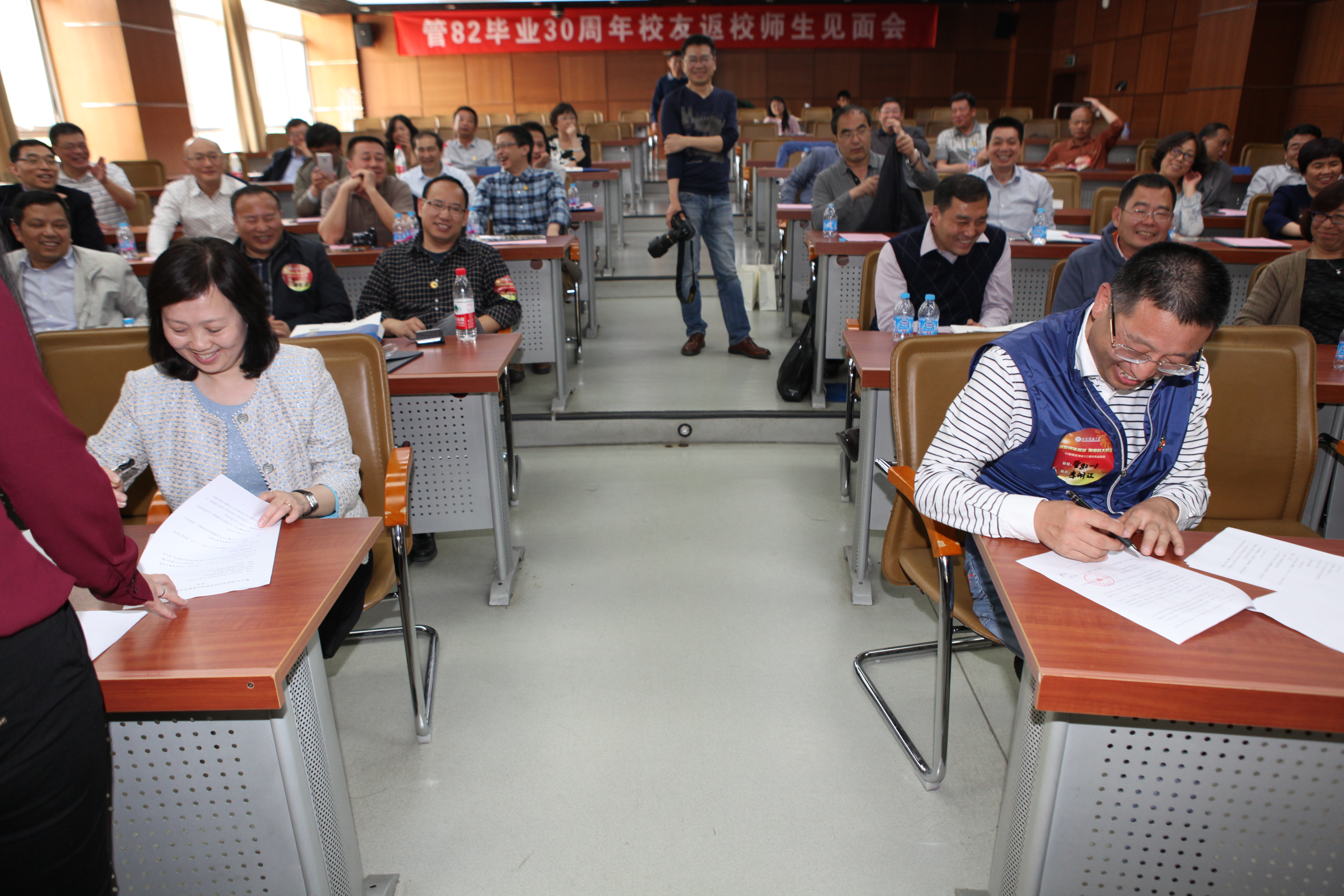 2016年4月23日,管82校友毕业30周年返校师生见面会在经管楼313教室举行。教育部领导武德昆,学校副校长王维才、何民庆,学院领导戴淑芬、何枫、刘明珠、温雅,老教师管志安、张群、陈志诚、袁江、万海川、李秀筠、刘继华、全介和管82校友们共聚一堂。