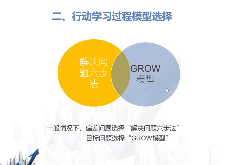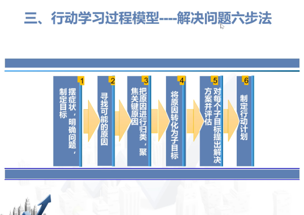 随后,刘老师对上述两大过程模型进行了细致阐述,重点介绍解决问题六步法模型的六个步骤和GROW模型法的四个步骤的要义及其使用技巧,并以自己主导的行动学习项目作为案例进行详细分析,剖玄析微将每一步方法的重点和难点进行了描述,同时从问题起因、症状困境、目标制定三方面,鲜活生动地向大家介绍了行动学习的立题标准,还原刘老师自己是如何在课堂教学中应用每一步方法催化项目并引导学生实践行动学习。