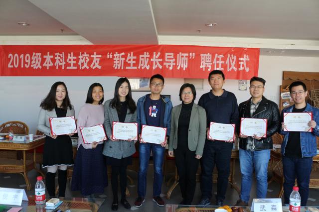 东凌探花视频 2019级本科生校友“新生成长导师”聘任仪式于10月26日上午9点30在学院1205室举行。学院党委书记武森,党委副书记倪宇,公共关系办公室主任秦艺芳,2019级新生辅导员戈誉阳、张洪榛,及7位校友出席了活动。
