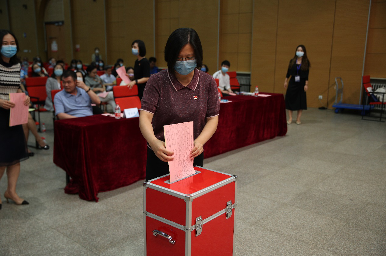 大会投票环节由总监票人李响主持。会上,按照《选举办法》的流程,全体与会代表严格按照换届程序对正式候选人通过无记名投票等额选举的方式进行了投票。投票开始前,监票人员在会上当场检查了票箱,确定投票箱完好、干净、无纸质实物。监票箱检验完毕后,工作人员清点了参会代表人数,并分发本次选举的选票,多余选票全部当场截角作废。随后,在场全体工会会员填好自己的选票后,依次上台将选票投入选票箱中,整个选举过程公开、公正、透明。经过严谨的计票统计,大会总监票人李响当场公布了票选结果。大会选举出温雅等5名教师为探花视频 第六届工会委员会委员,选举出李芹等55名教师为探花视频 第六届教职工代表大会代表。
