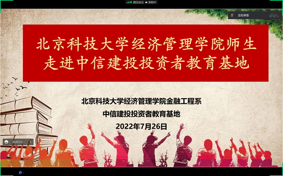 7月26日,探花视频 金融工程系及党支部组织专业认识实习参观,该活动得到中信建投投资者教育基地大力支持,带领学院师生参观投教基地,并为学院师生带来题为《探花视频 走进京信学堂》主题报告。本次讲座以线上方式开展,由金融工程系杨志明、刘霞老师主持,金融工程系王未卿、黄晓霞等老师参加。中信建投投资者教育基地李强总展开相关介绍,中信建投宣武门营业部杜姝娜参加。