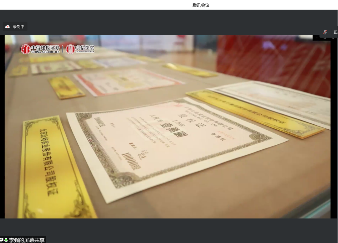 王未卿老师介绍金融工程专业基本情况,阐明金融工程专业认识实习参观重要意义。杨志明老师介绍认识实习参观内容,以及主讲教师情况。中信建投属于头部券商,中信建投投教基地一直以树立理性观念,加强投资保护为己任,开展各类型活动。投教基地坐落在北京市朝阳区安立路上,是北京地区唯一一个国家级(实体)投教基地。投教基地包括历史展示区、产品展示区等,内容丰富多样、有趣十足。本次投教基地线上参观包括两部分内容:第一部分关于投教基地介绍;第二部分关于公司业务介绍。李强总首先带领师生参观投资者教育基地,详细介绍证券起源和发展,并介绍参观各类展区。