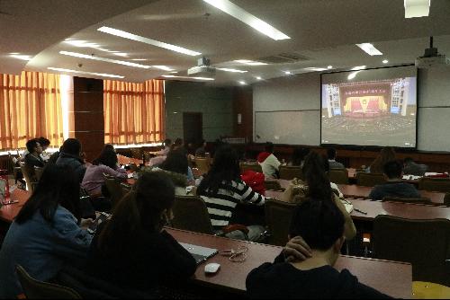 2018年12月18日上午10点,中共中央、国务院在人民大会堂召开庆祝改革开放40周年大会。东凌探花视频 组织全体班子成员、全体系主任、全体系书记、院办主任、党委秘书和全体学生口辅导员以及各年级学生代表在经管楼312集中收看了大会盛况,聆听了习近平总书记在庆祝大会上所作的重要讲话。